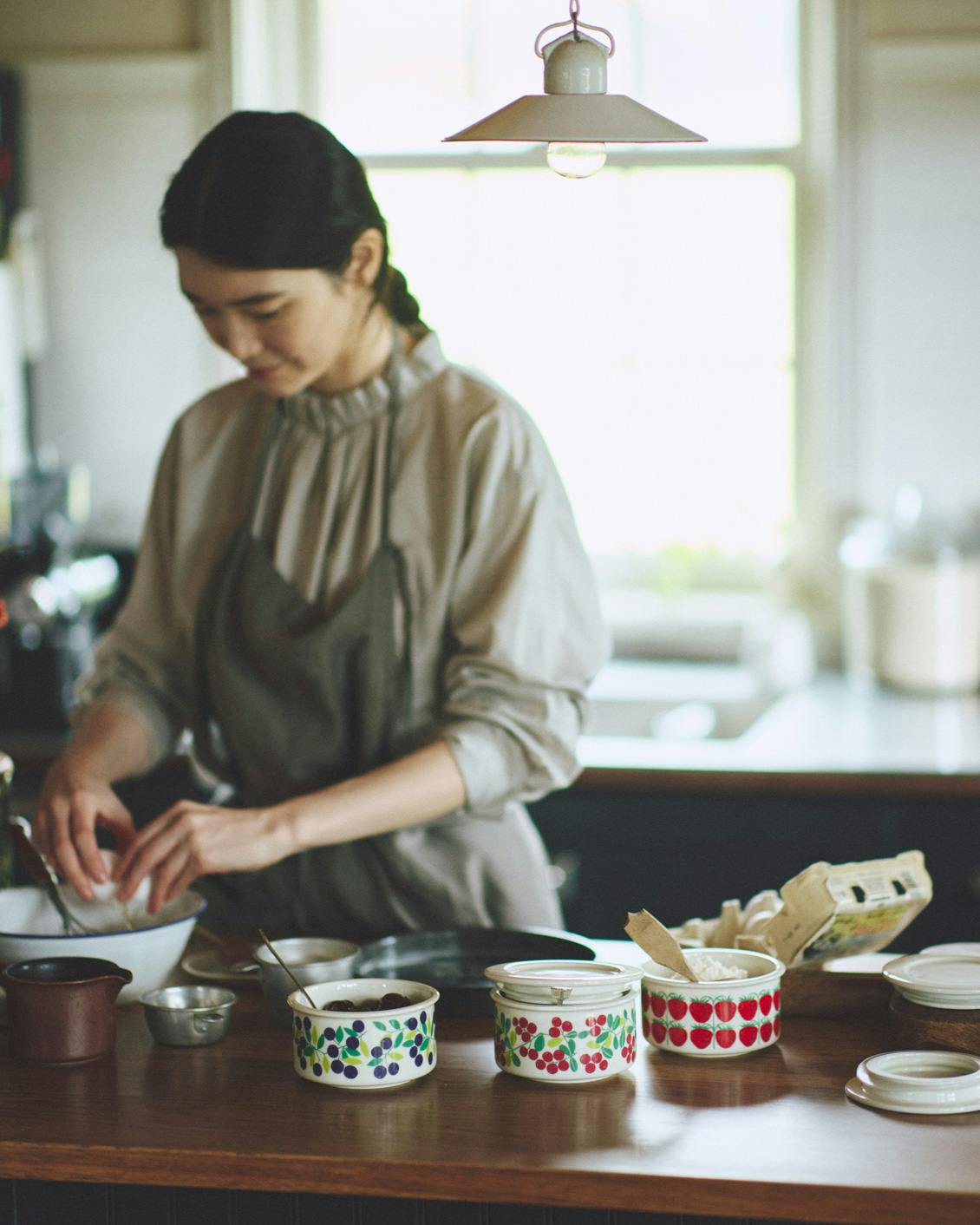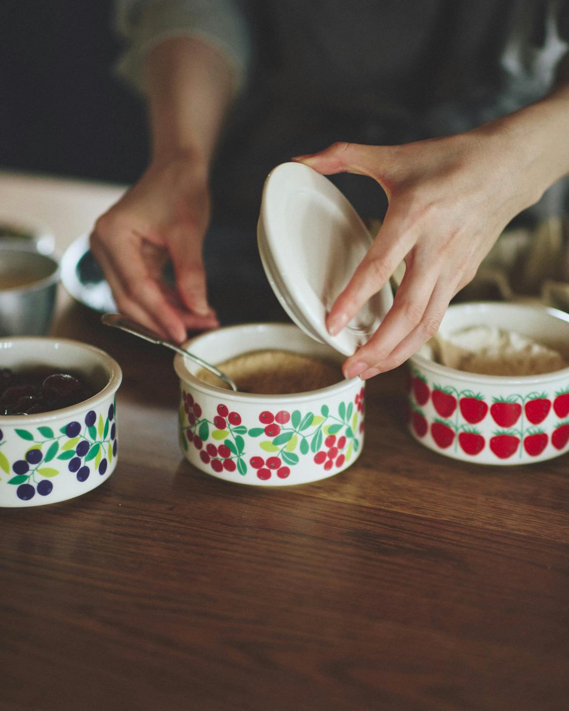 冷蔵庫にも入れられるので常備材やおかずの保存にも便利。電子レンジやオーブン、食洗機に入れられるのは現行品だからこそ。実用性にも優れた道具なんです。