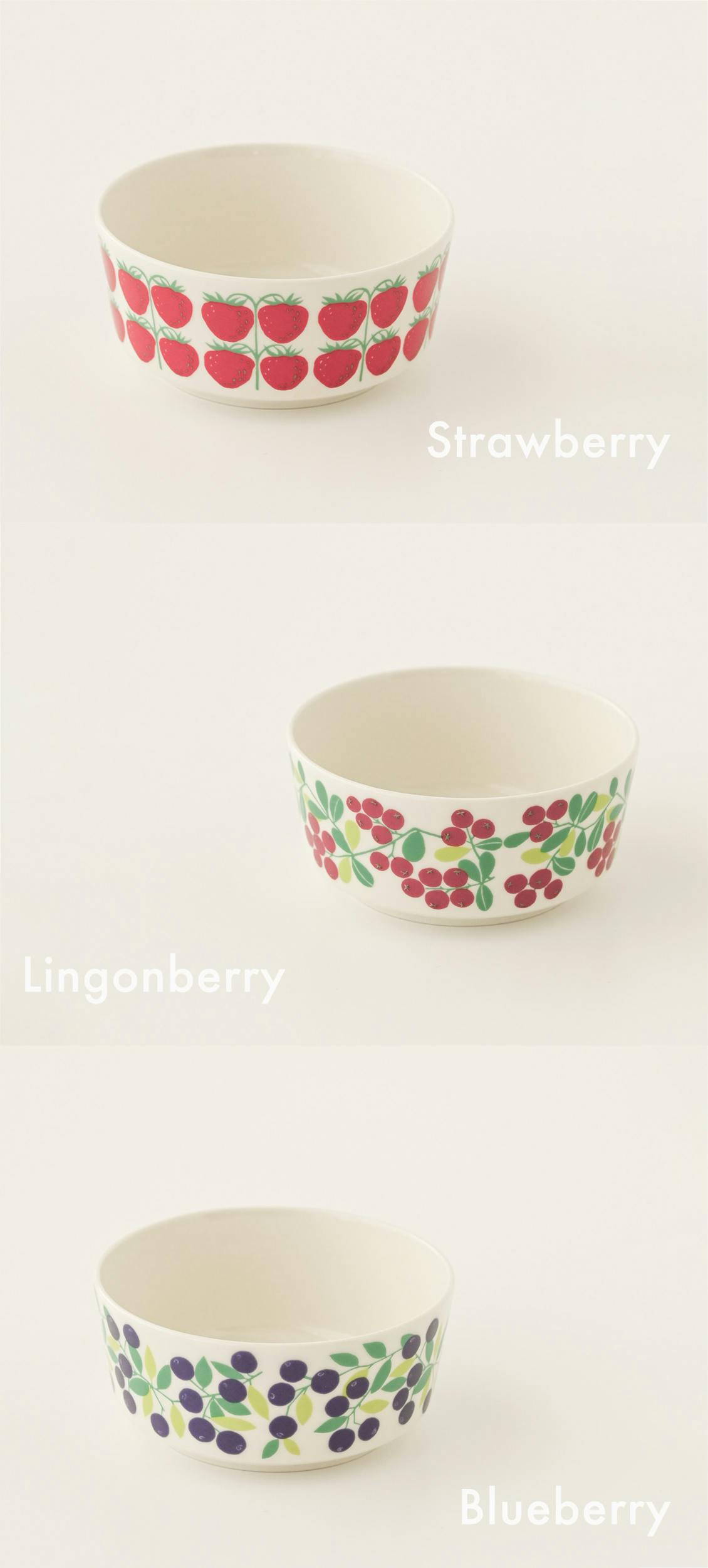 Pomonaの数ある絵柄の中からセレクトしたのは、ストロベリー、リンゴンベリー、ブルーベリーの3種類。
