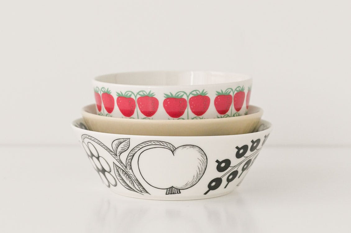 ぽってり色鮮やかなフルーツが瑞々しく描かれたPomona。どこか懐かしさも感じるチャーミングなデザインで、今もなお世界中で愛されているARABIAの名作です。