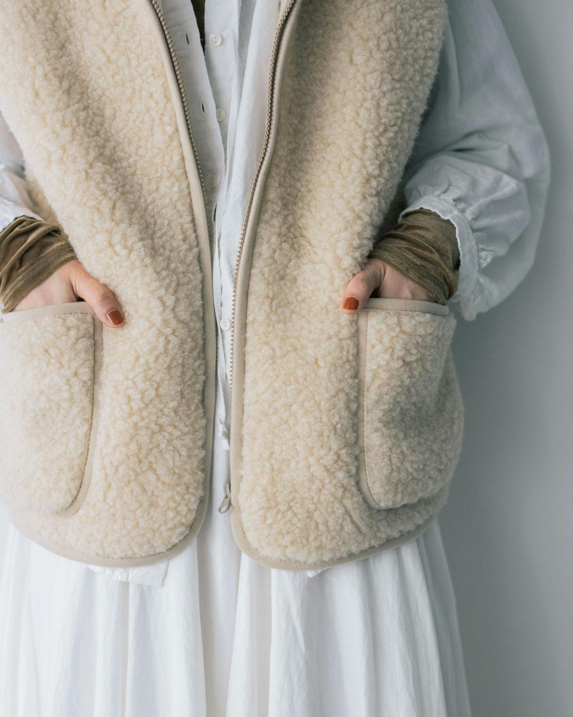 こちらのベストも「あったかい」「チクチクしない」「軽い」 の三拍子が揃った、まさに理想のボアアイテムです。