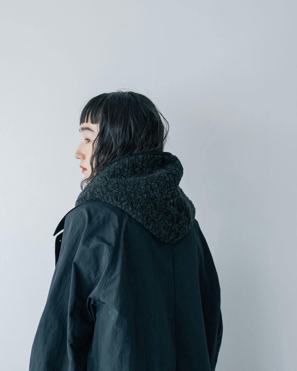 よく見ると白い糸が混ざっており、ボアの立体感やふわふわな風合いが存分に楽しめる「やさしい黒」。
