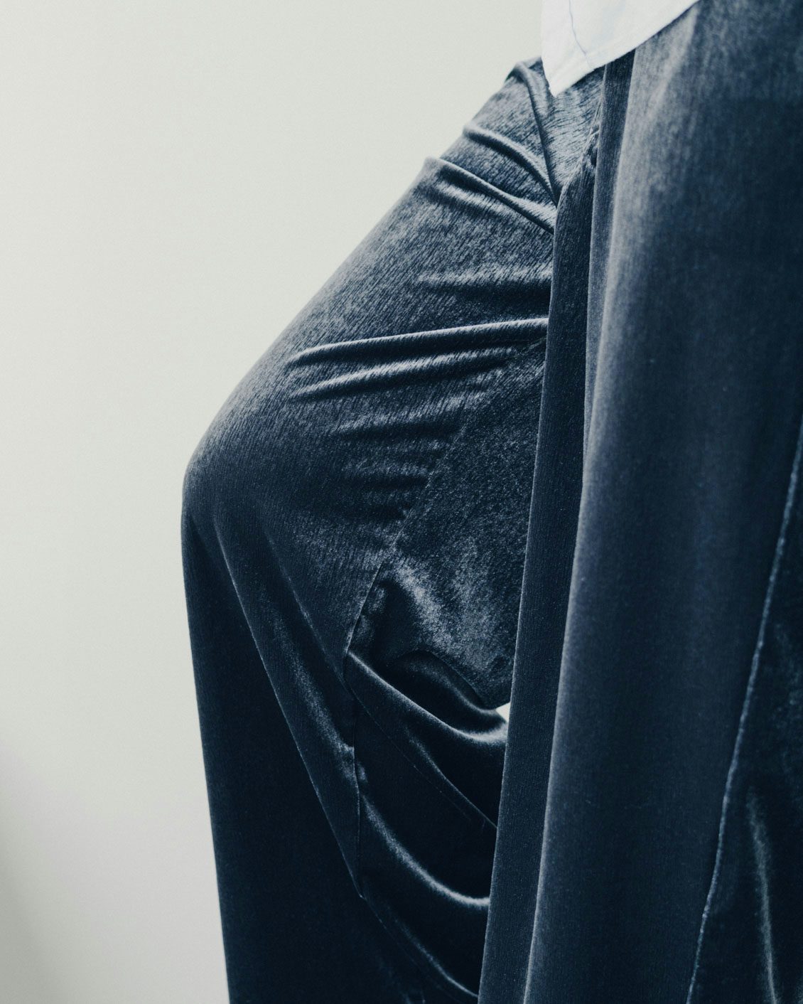 こだわったのは生地選び。手持ちの服にも品よくなじむよう、やわらかな揺れと表情のある、程よいツヤのベロア生地をセレクトしました。
