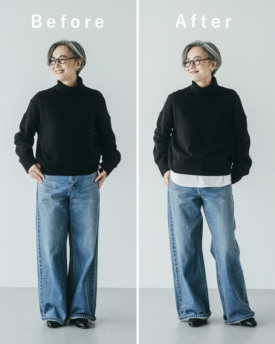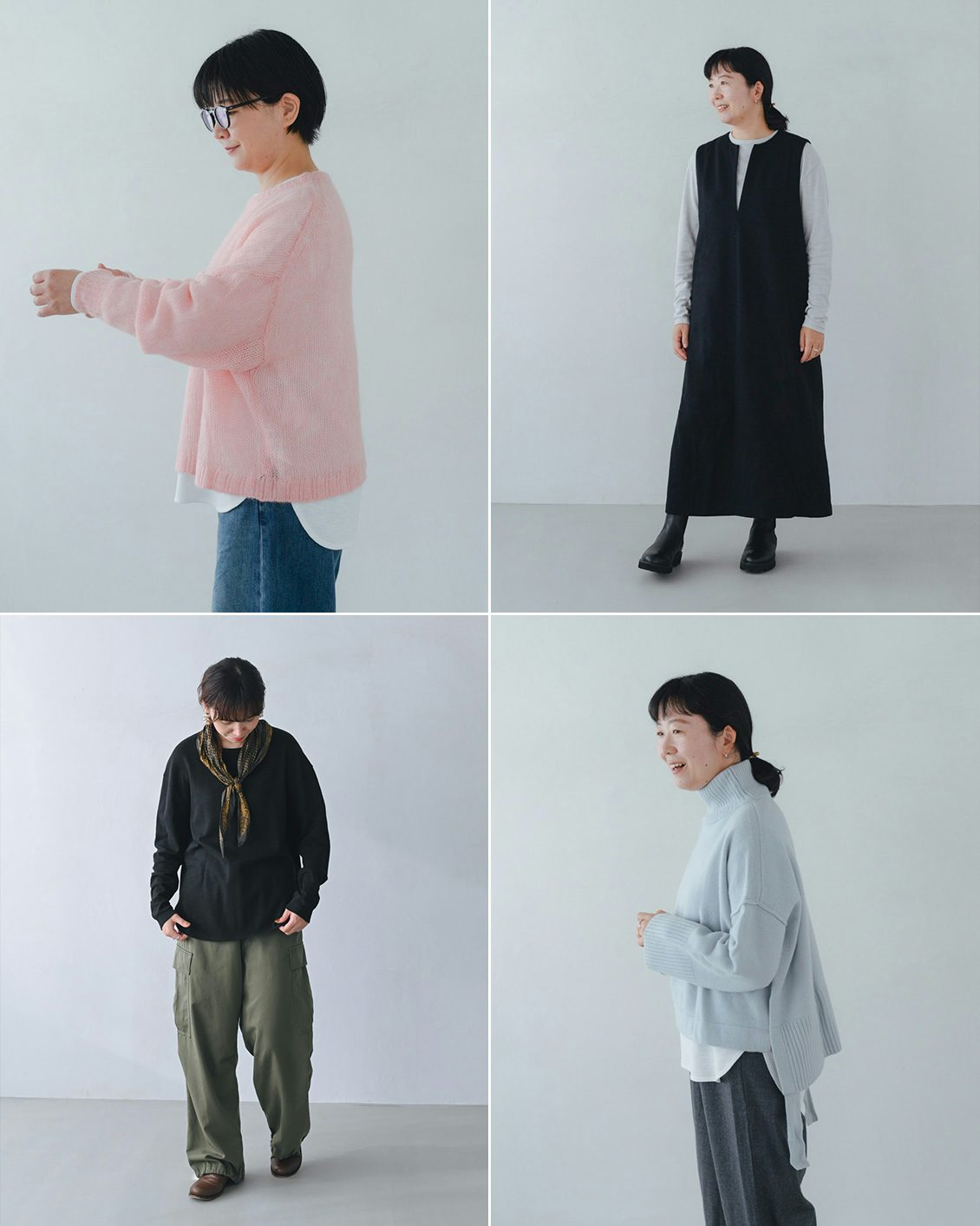 着心地はもちろん、いままでの定番服に合わせるだけで、今っぽく味変できる自信作です。