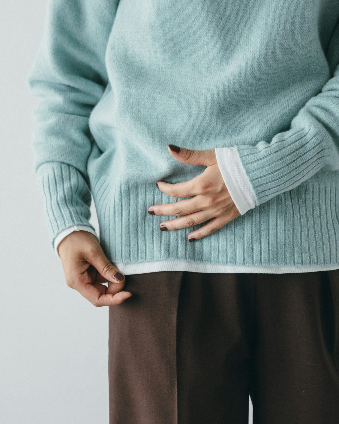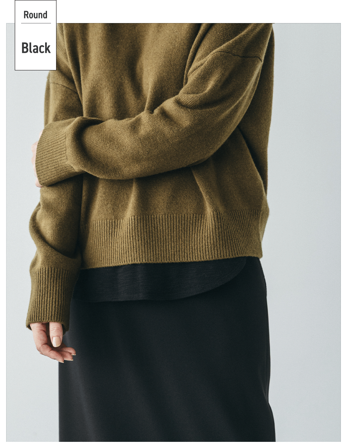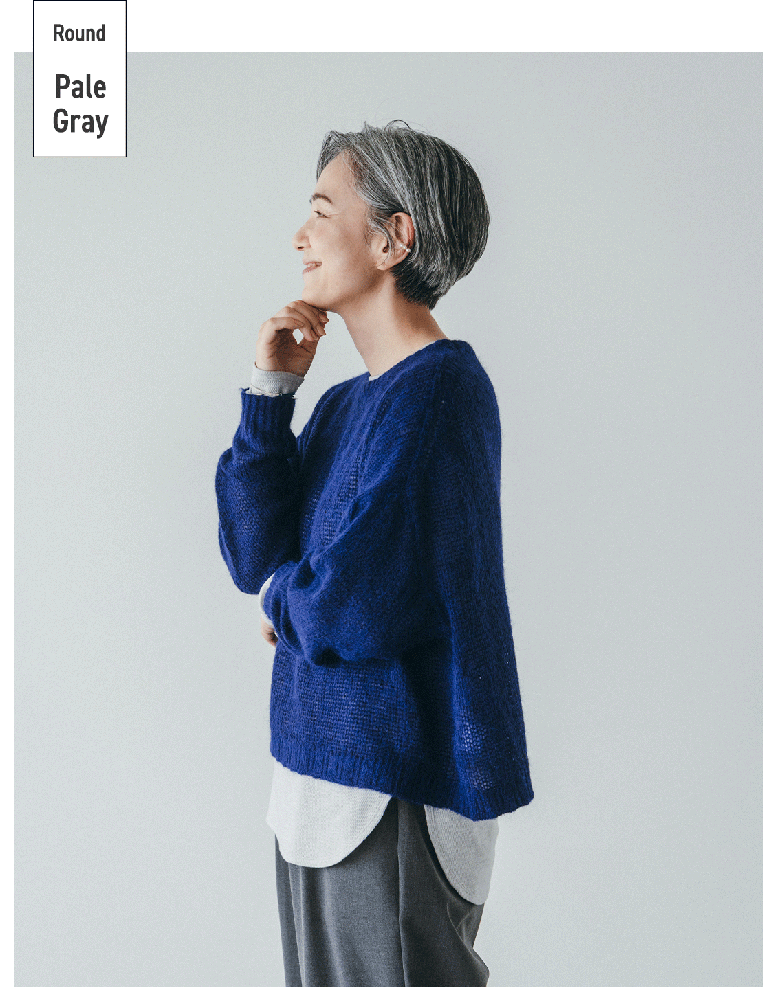 ネックラインは、首周りが広いアイテムと合わせやすい、少し横に開いた形に。