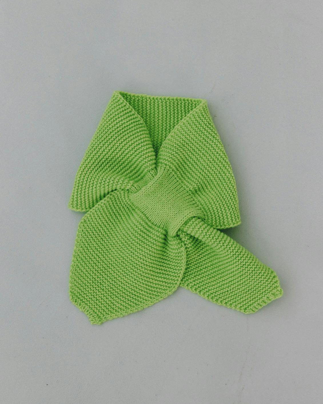 くるっと巻くだけでスカーフを着けたような形に仕上がって、いつものコーディネートにも気の利いたアクセントがすぐに作れるんです。