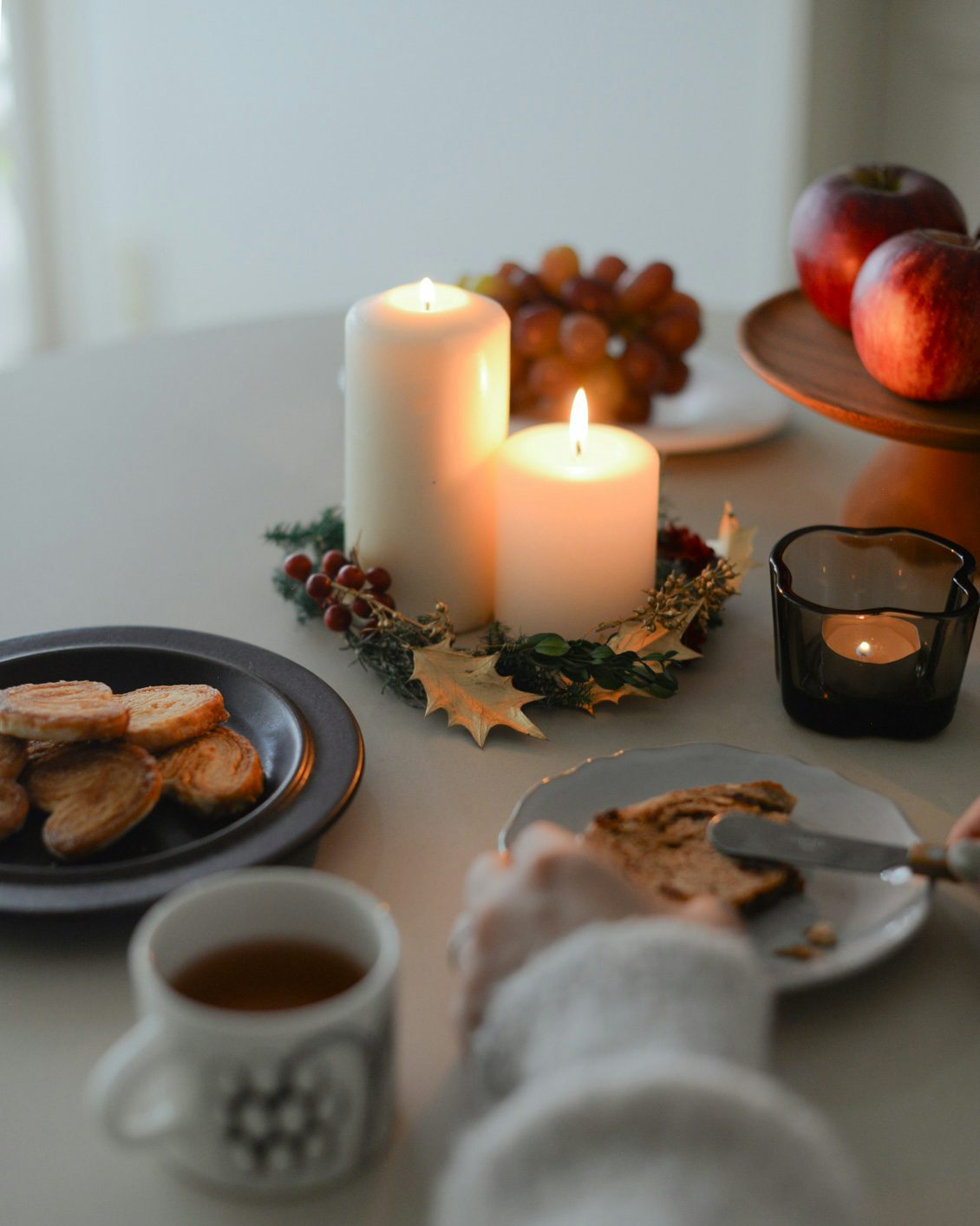 キャンドルと組み合わせてテーブルの真ん中に置いたら、食卓がぐっとクリスマスムードに。
