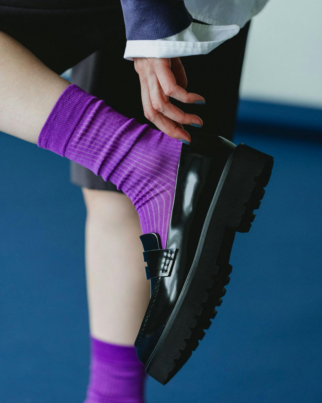 | 注意事項 | ※雨の日の着用は避けてください。 ※お使いのPCモニター、スマートフォンの機種によって、実際の色味と見え方が異なる場合がございます。予めご了承ください。 ※雨に濡れたり汗等で水分が含まれた場合に、色落ちする可能性があります。ソックスと合わされる場合は、色移りにご注意ください。 |
