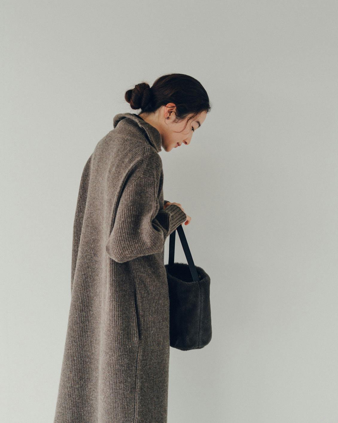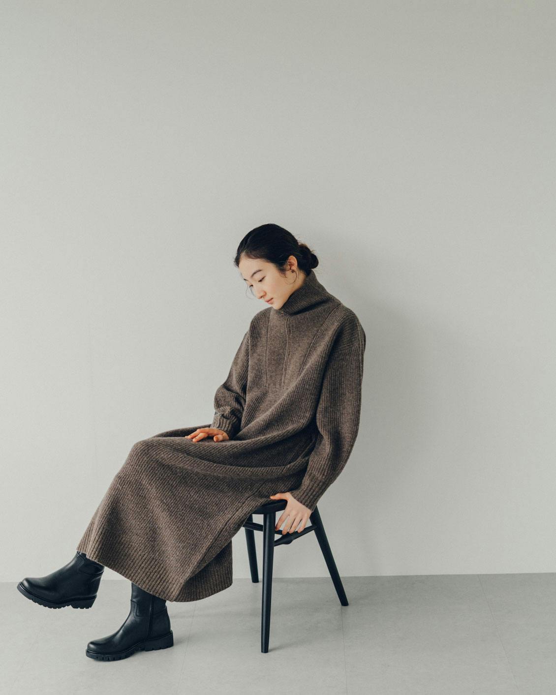 「冬の大人に」ウール素材のハーフジップニットワンピース / チャコール・ブラウン