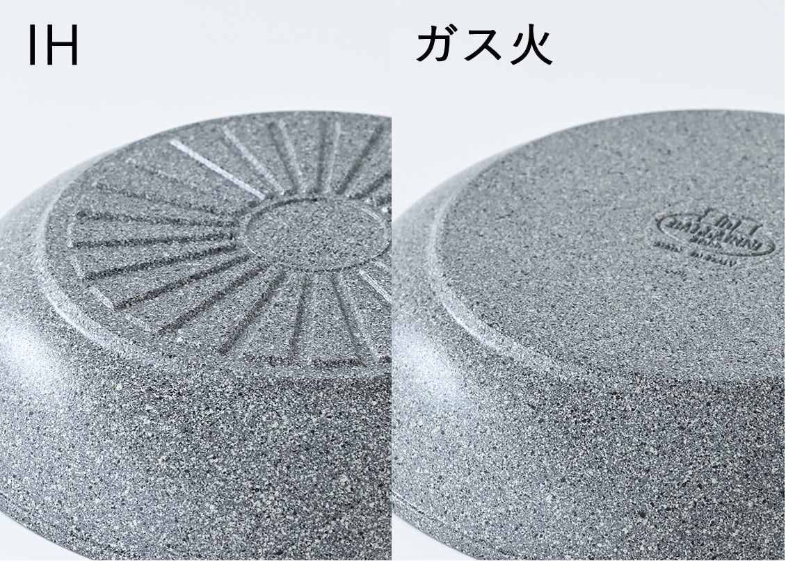 ・IH用は底面が放射状に広がる「ラディアントボトム」で、効率的に熱が広がります。