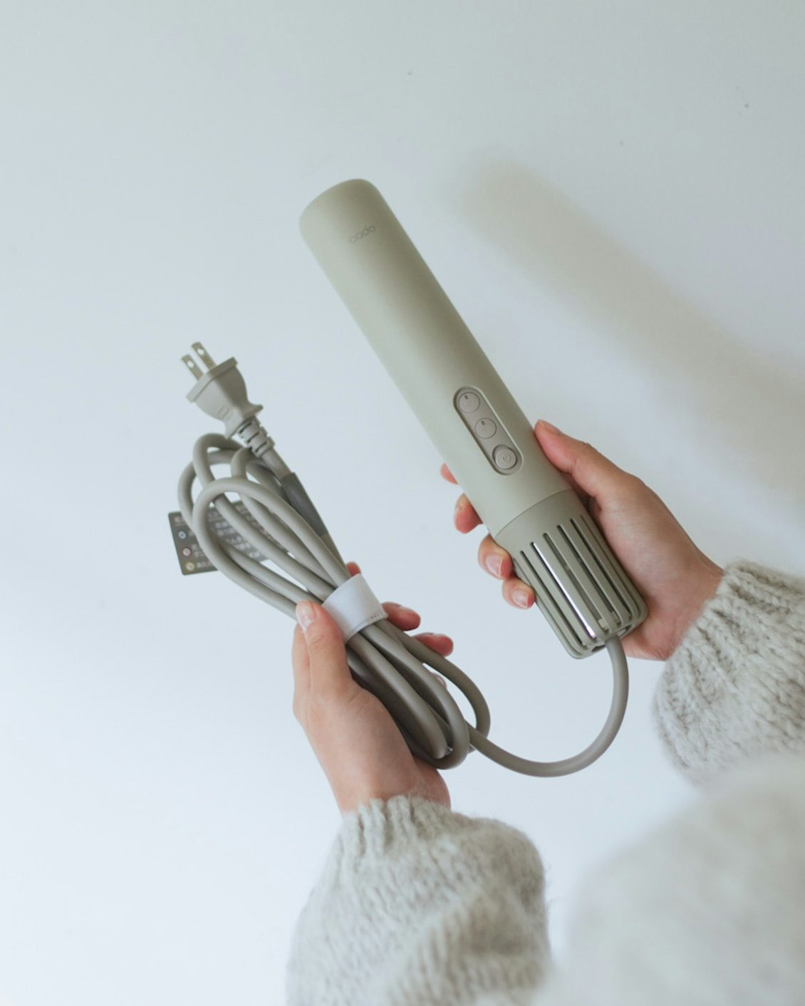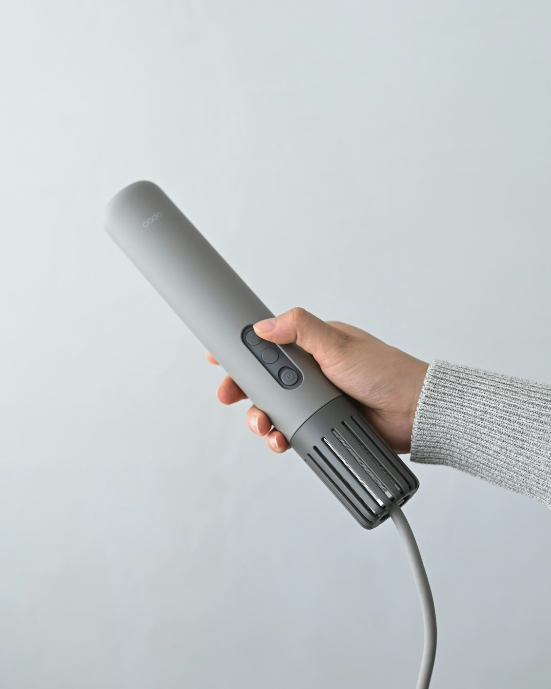 ヘアアイロンほどのサイズ感ながら、しっかり頼れるパワフルさ。2m先まで届く高風速で、