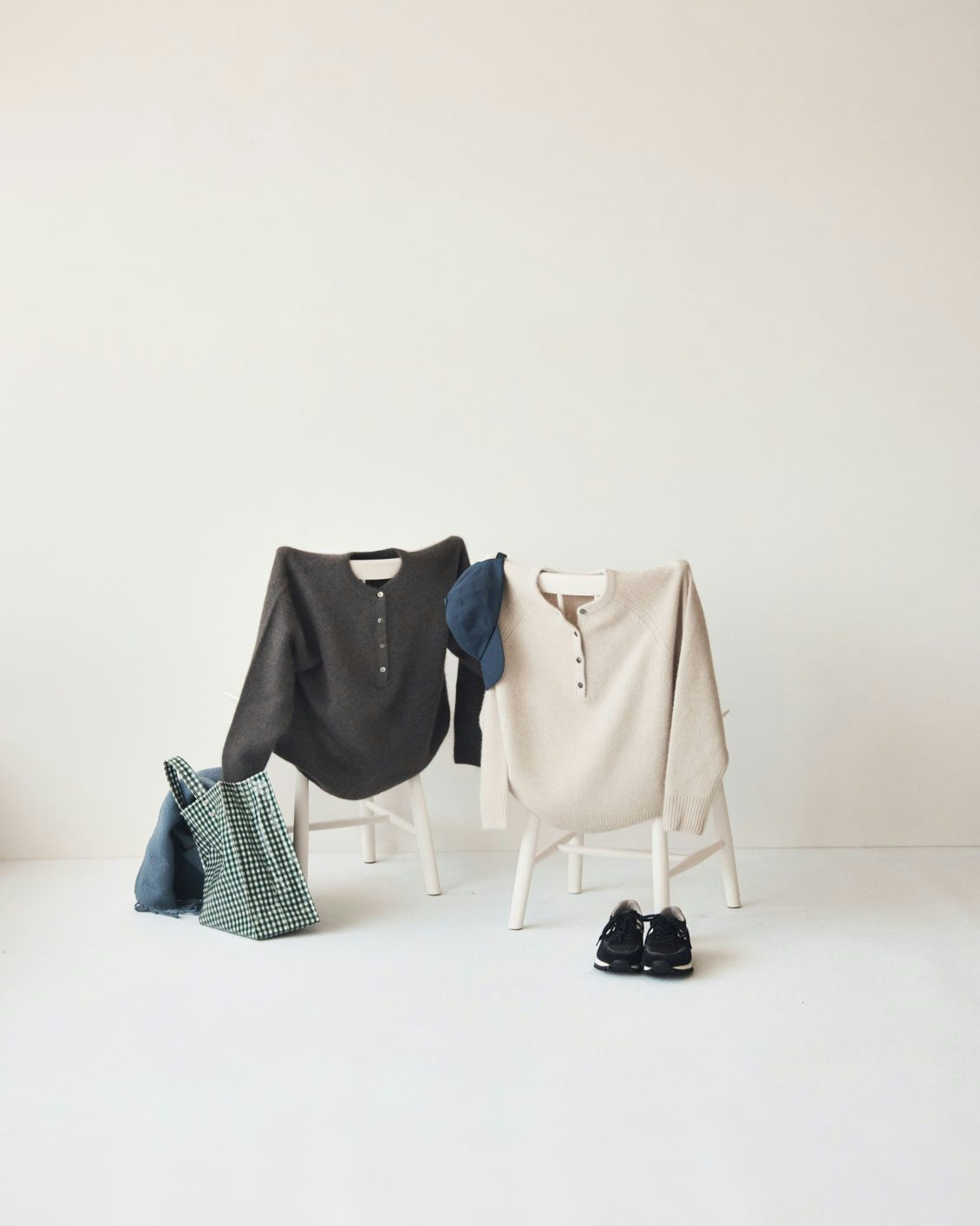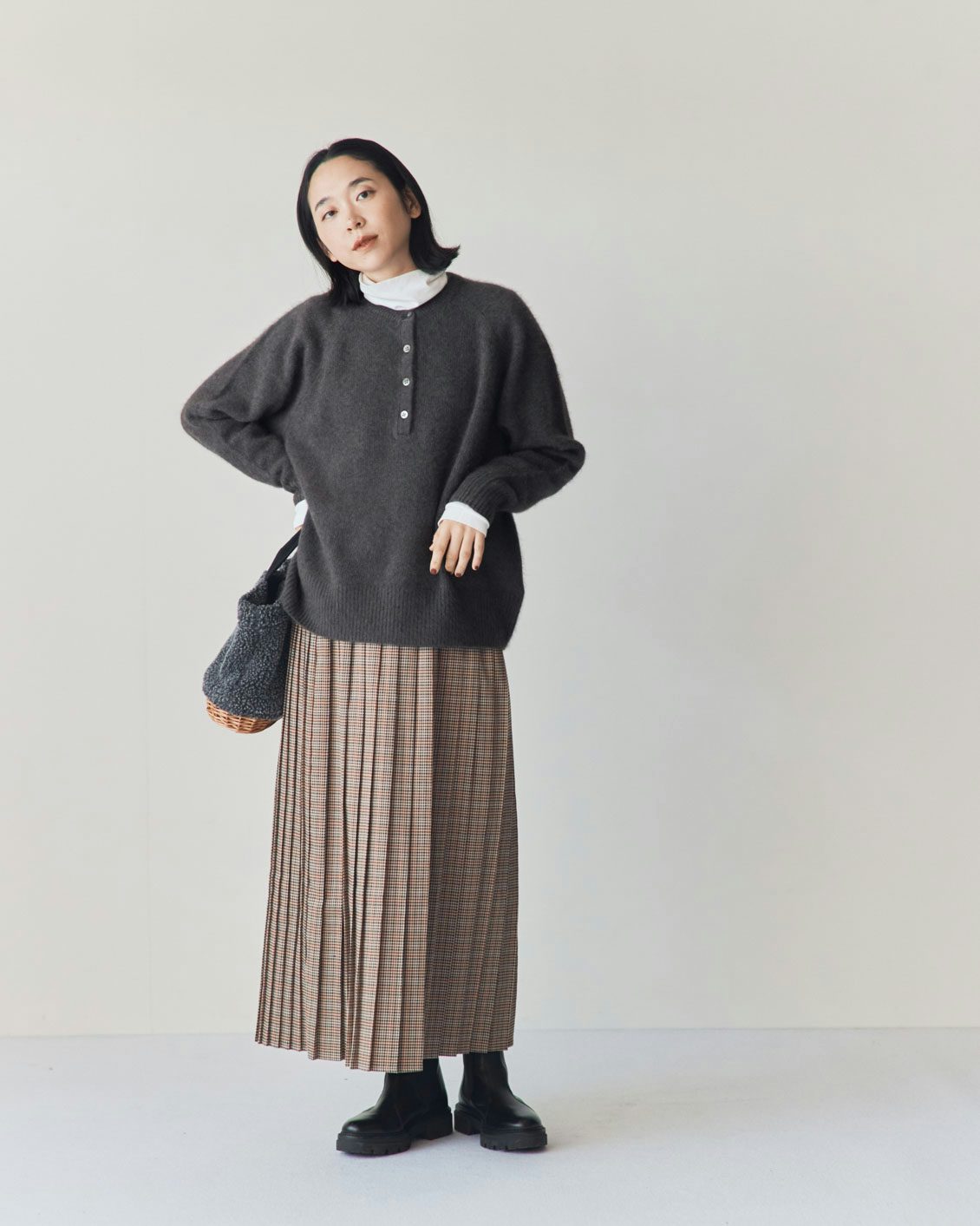 この汎用性の高さこそ、ヘンリーネックの大きな魅力。一着で、飽きずに着回せるニットなんです。