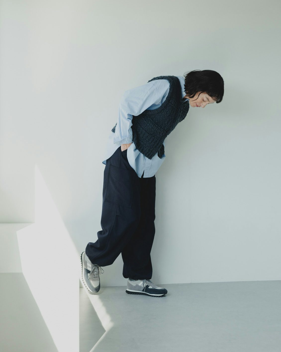 カーゴパンツらしいカジュアルな要素はそのままに、オシャレをして出かけたくなるような雰囲気に仕上がりました。
