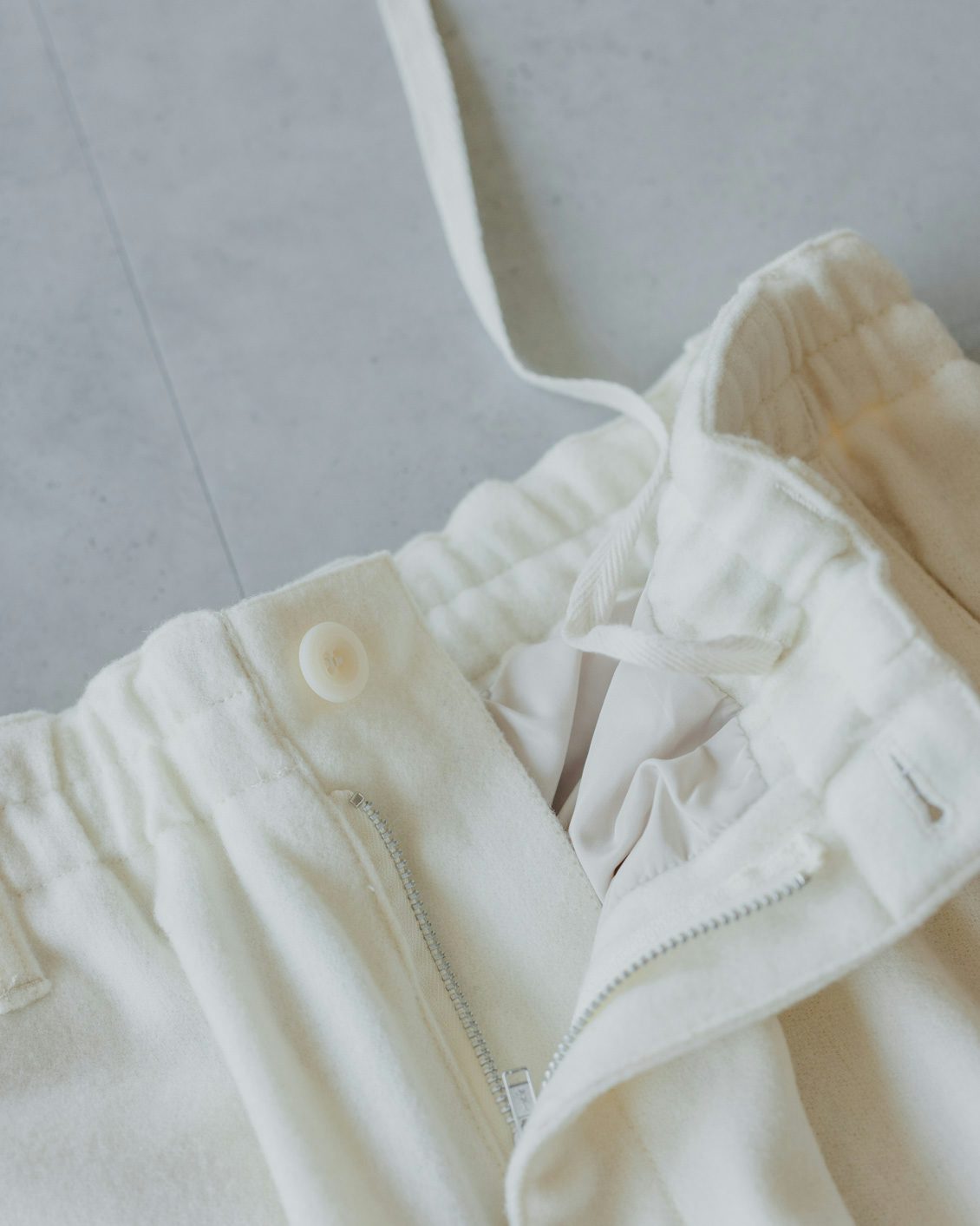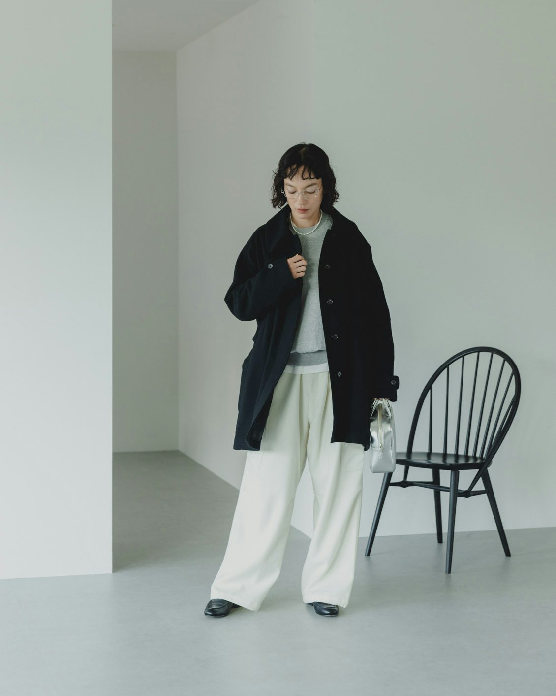 ラフにはけるサイズ感はそのままに、素材をウールフラノへ。