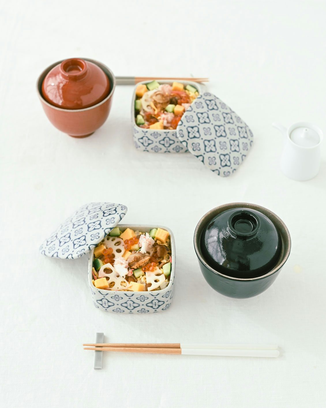 蓋付きの器なら、いつものご飯も「よそ行き」の表情に。食べる直前にパカッと蓋を開ける瞬間の高揚感は、大人も子供も嬉しいものです。