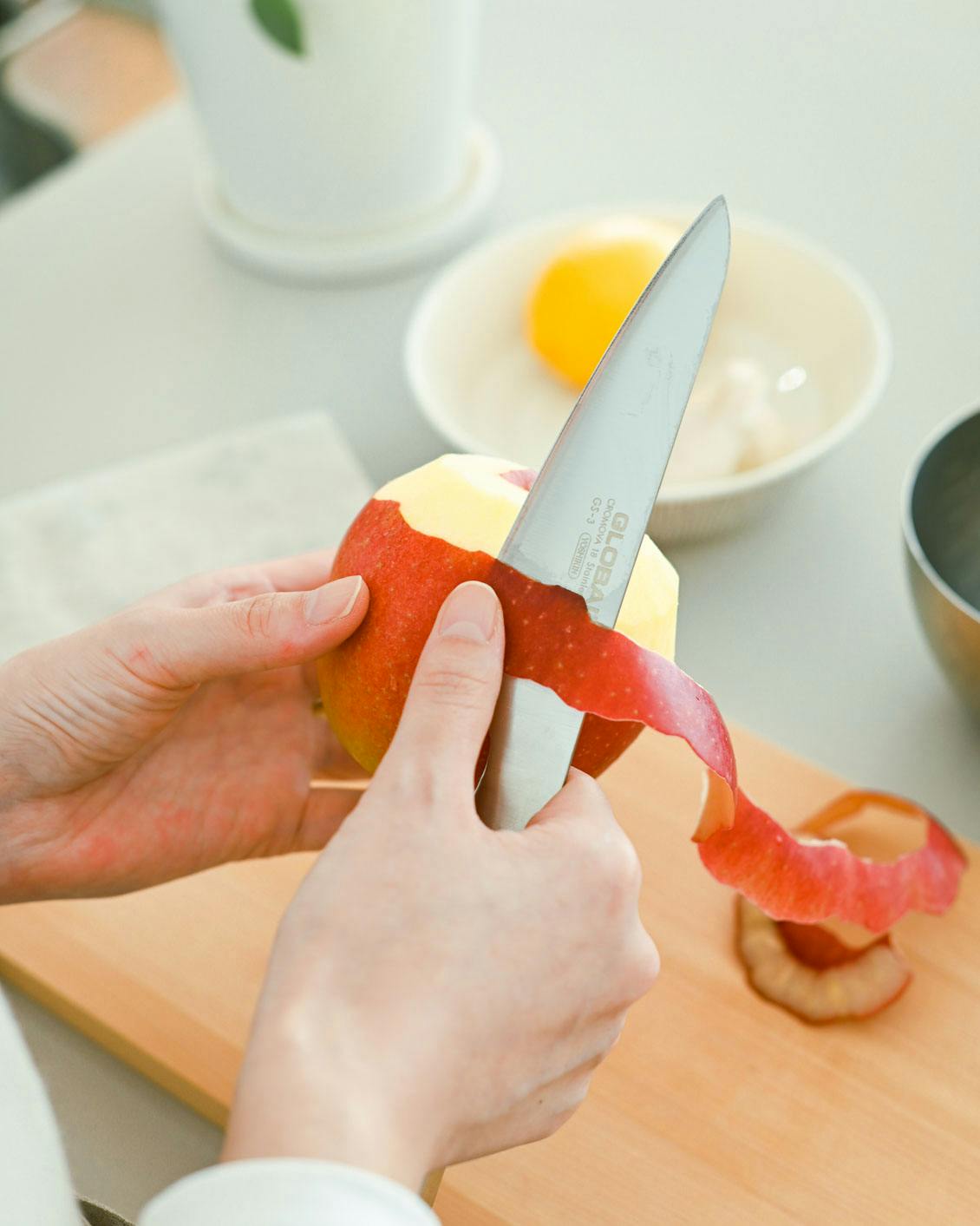 細身かつ切っ先が尖った形状は、果物のへたをとったり、皮から果肉を切り離す作業も楽々。