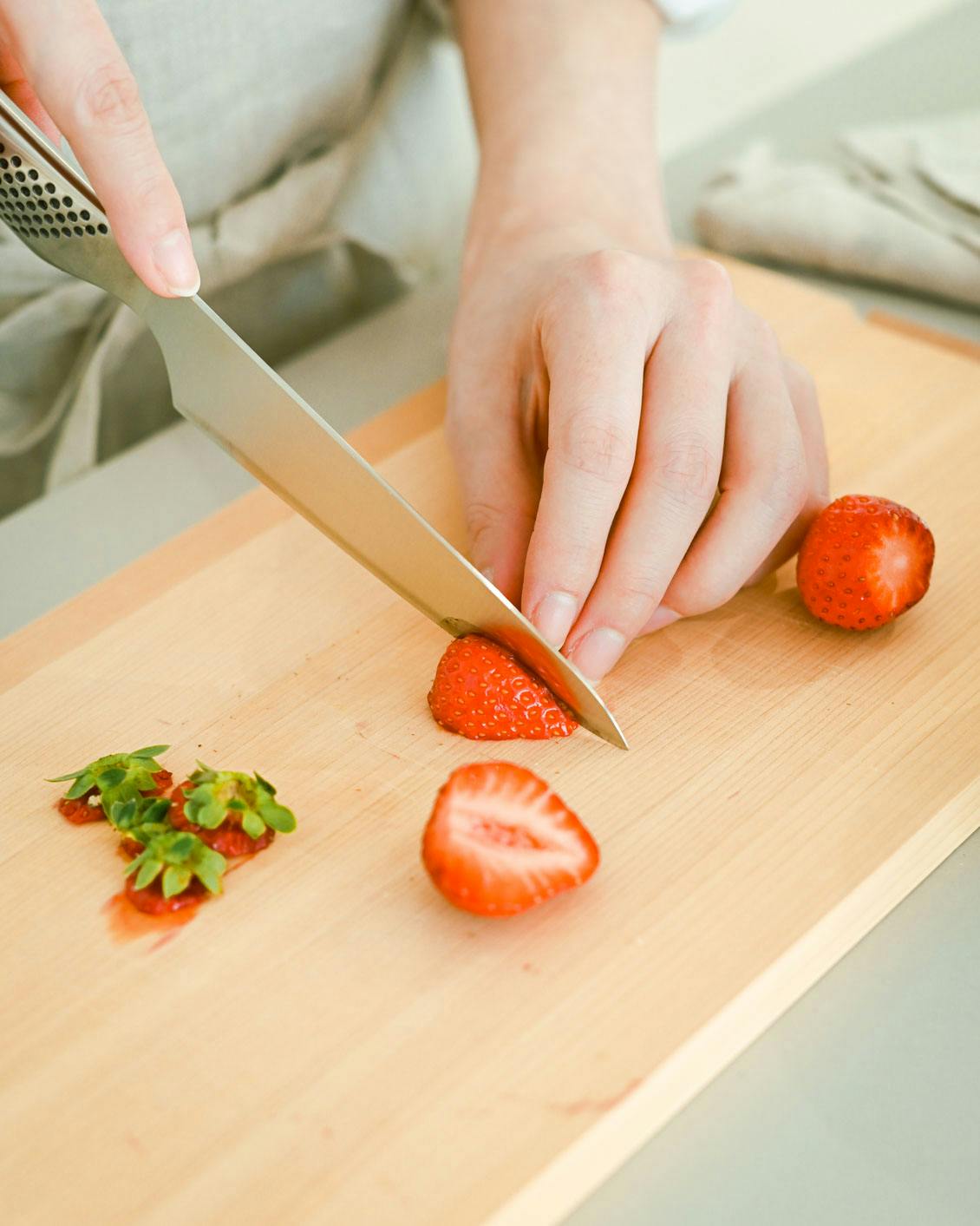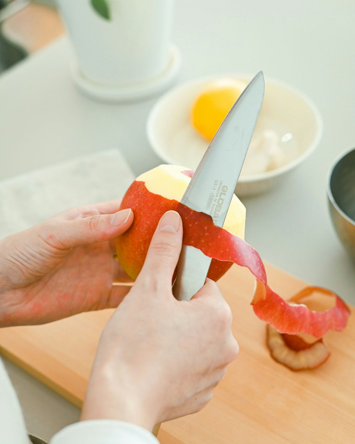 とにかく小回りが効くため、果物の皮剥きや飾り切りなどの細かい作業、小さな野菜や薬味をさっと切りたい時にとっても便利です。
