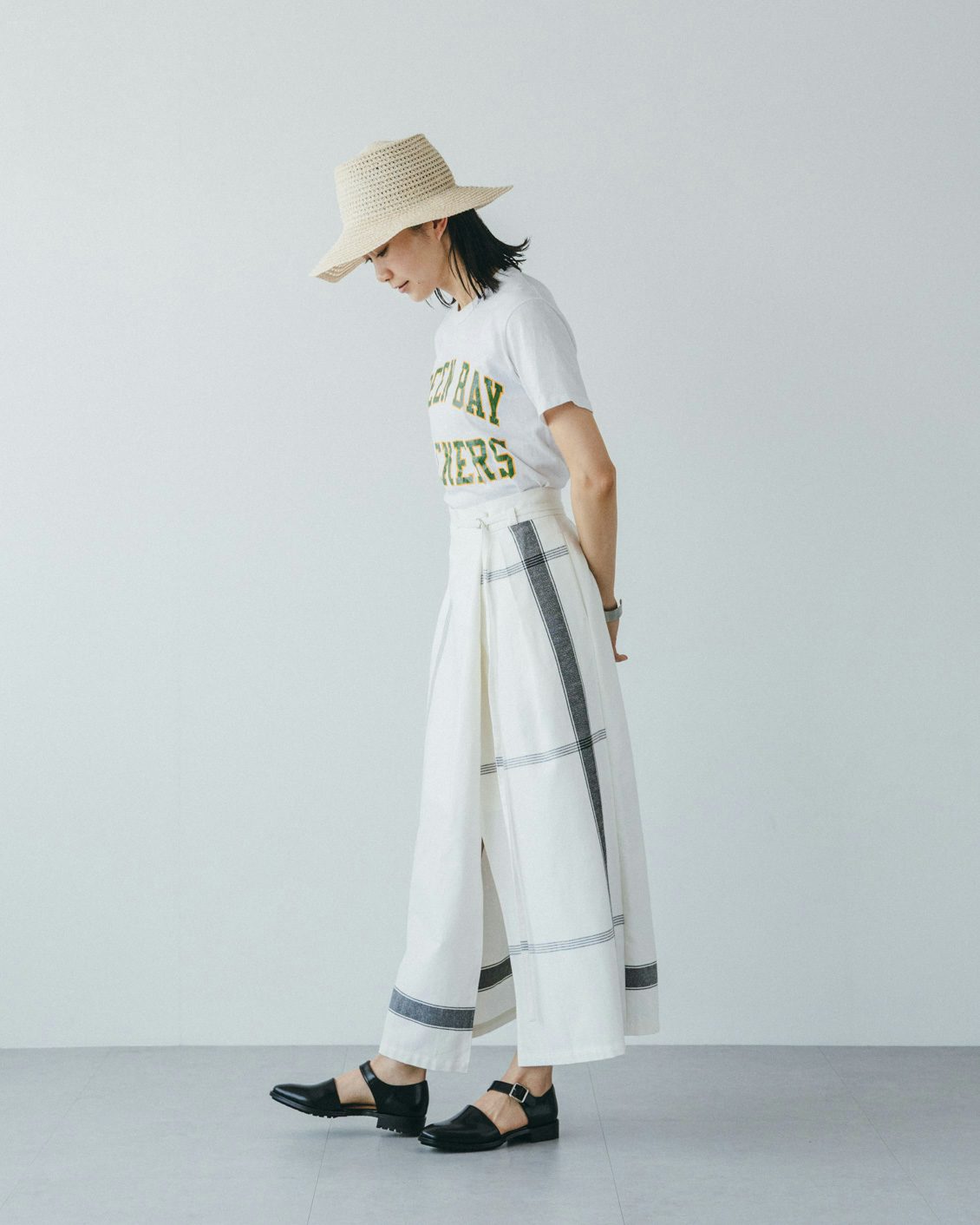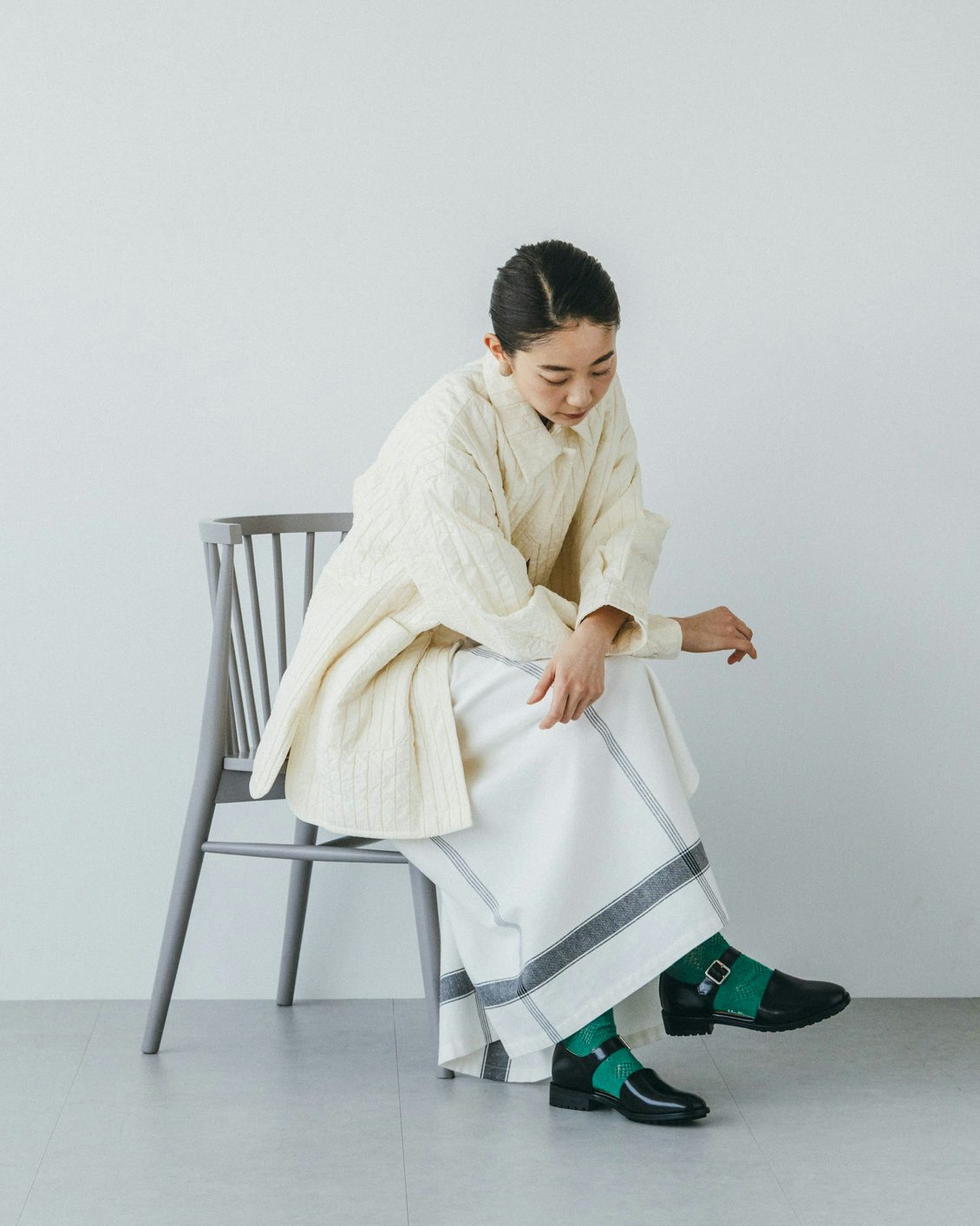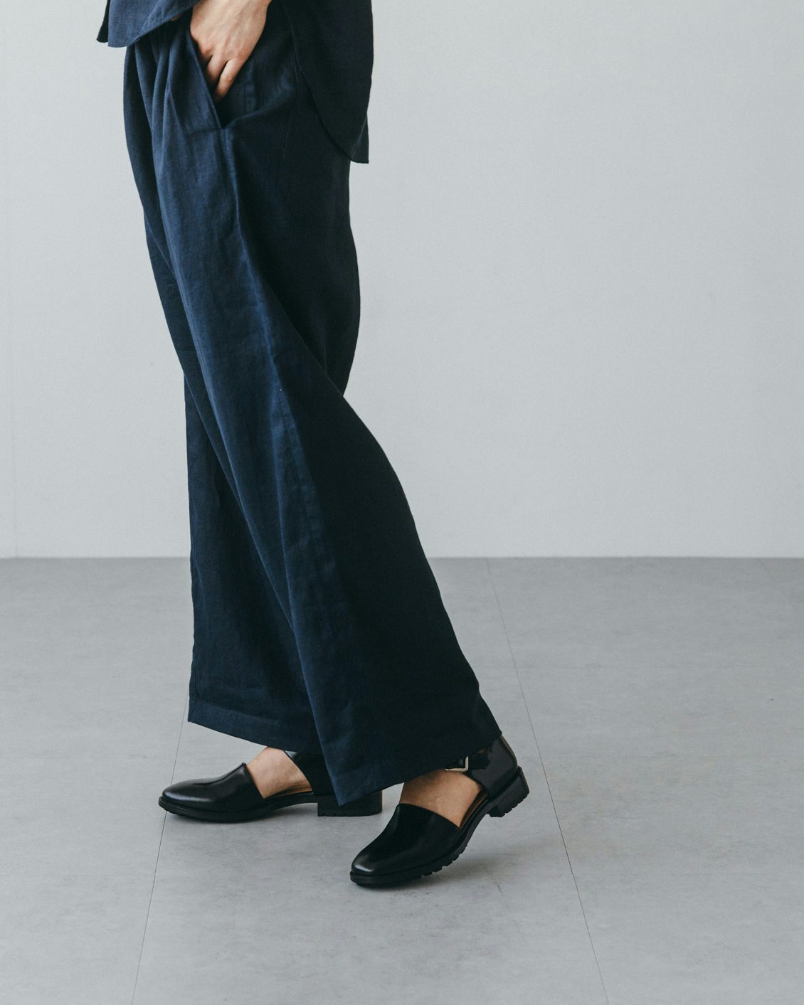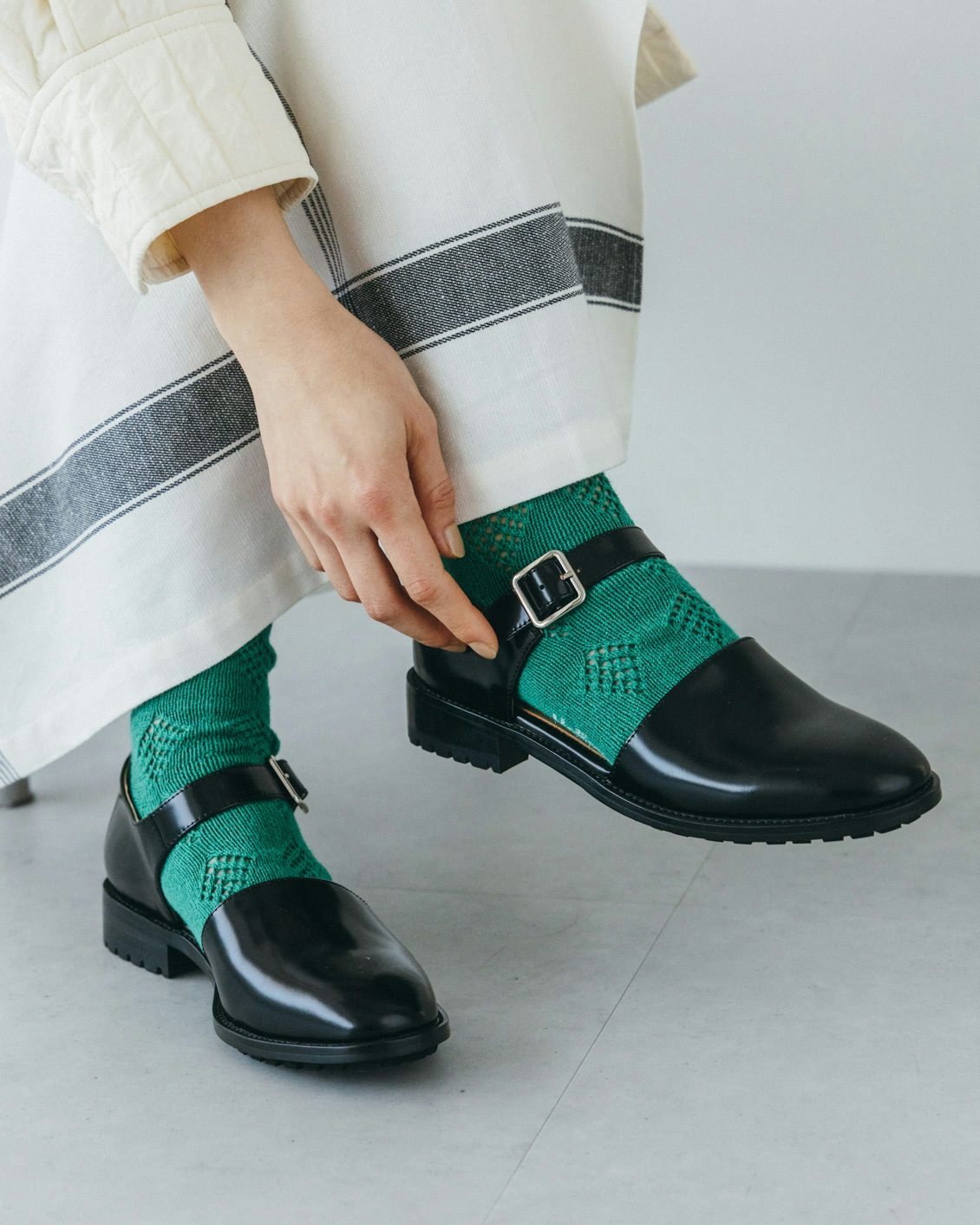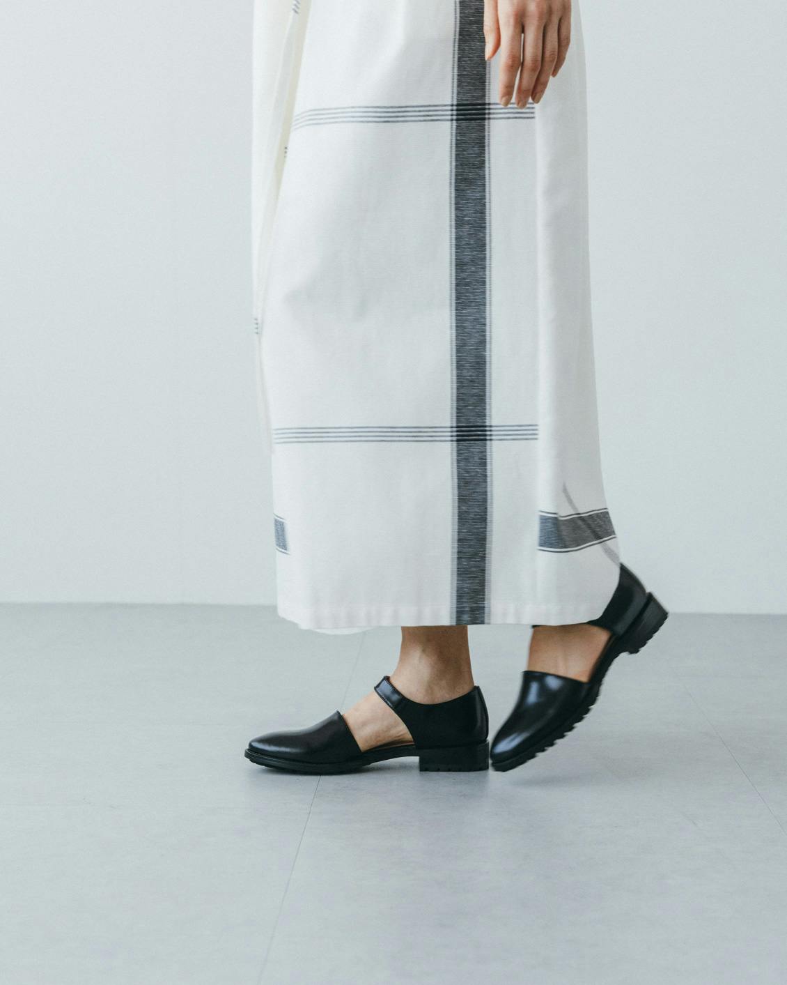 足首まわりに生まれる余白により、ロングスカートや裾の長いパンツの日も重たくならないバランスにまとめてくれるんです。