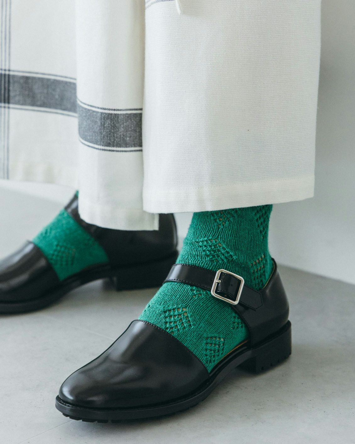 靴下のカラーを楽しみたい日も自然に馴染むので、さりげない遊び心を足元に添えられるのも魅力です。
