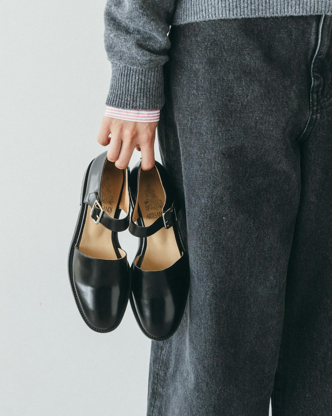 当店でも人気のシューズブランド「ARTESANOS(アルテサノス)」から、足元にほどよい抜け感をつくってくれる「ガラスレザーストラップシューズ」をご紹介します。