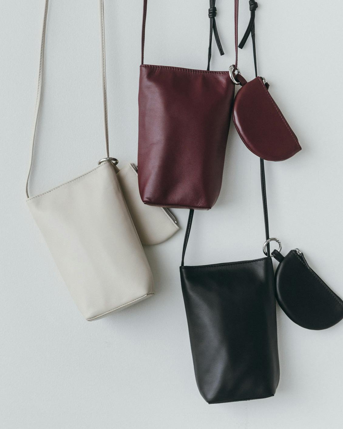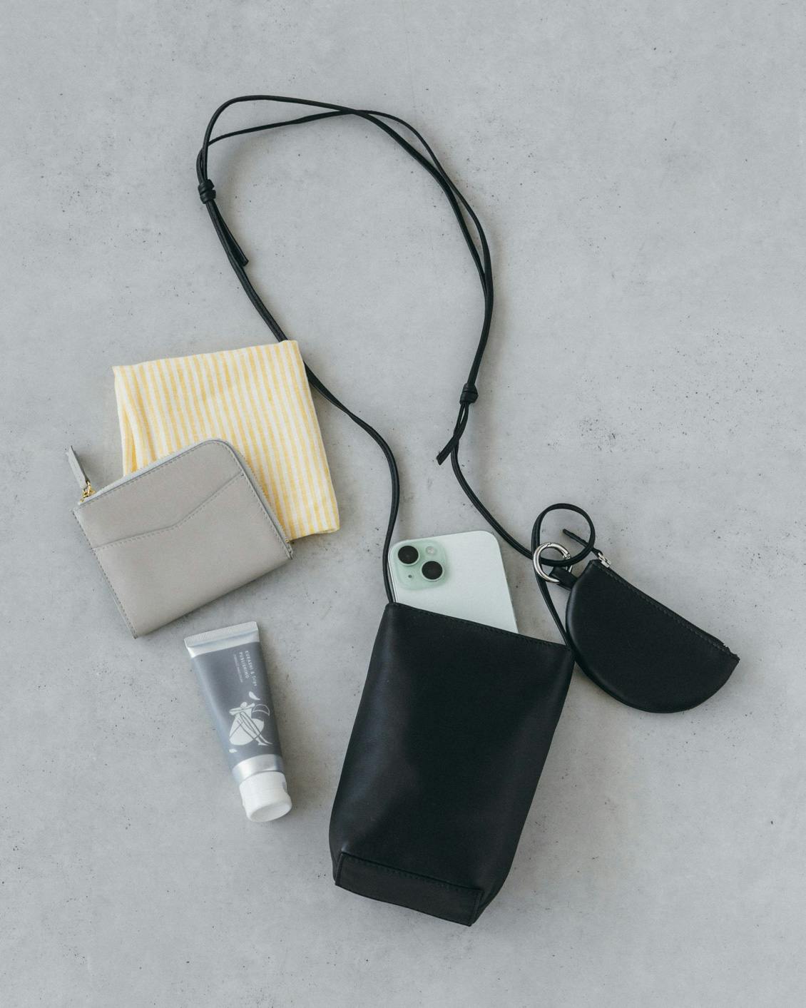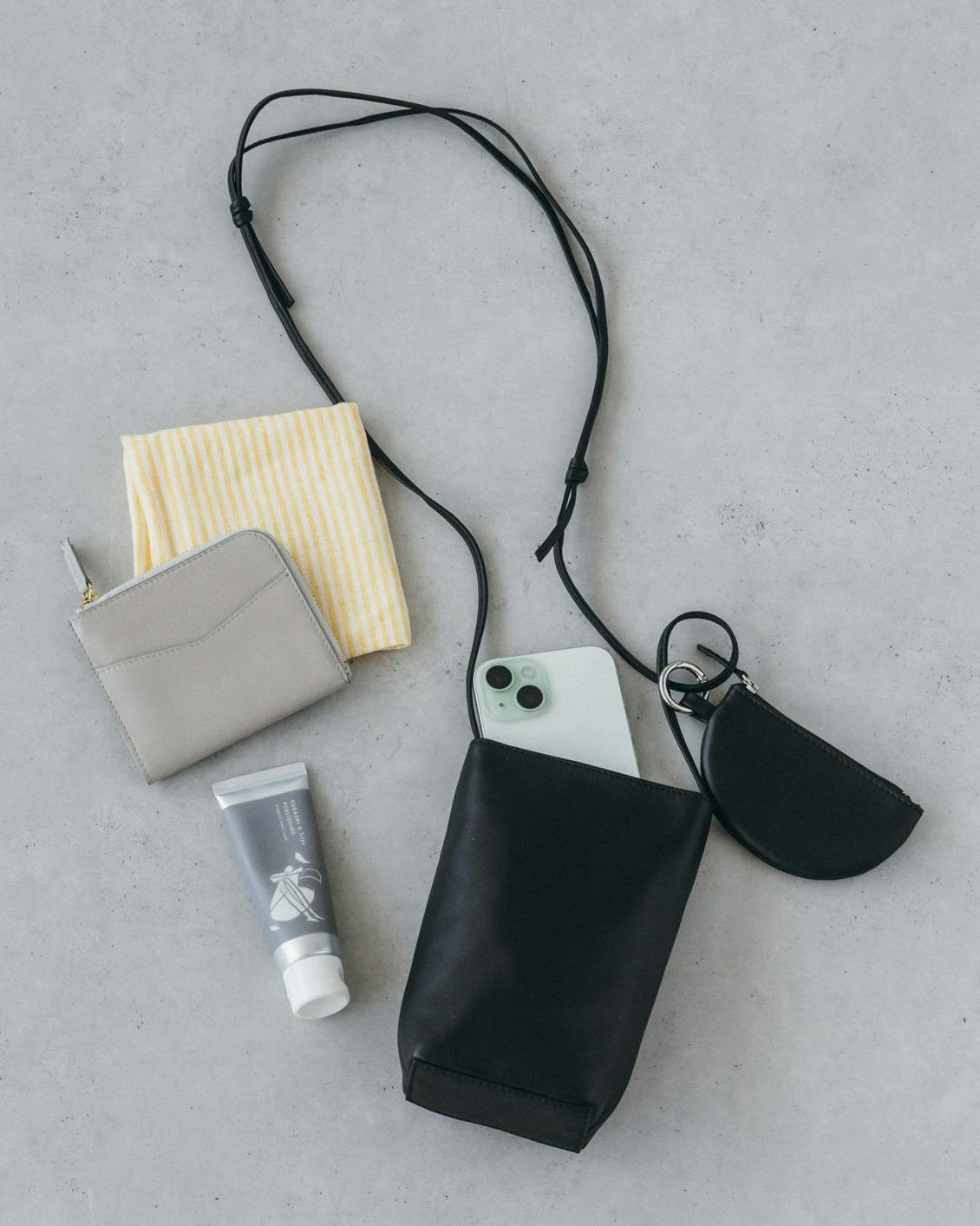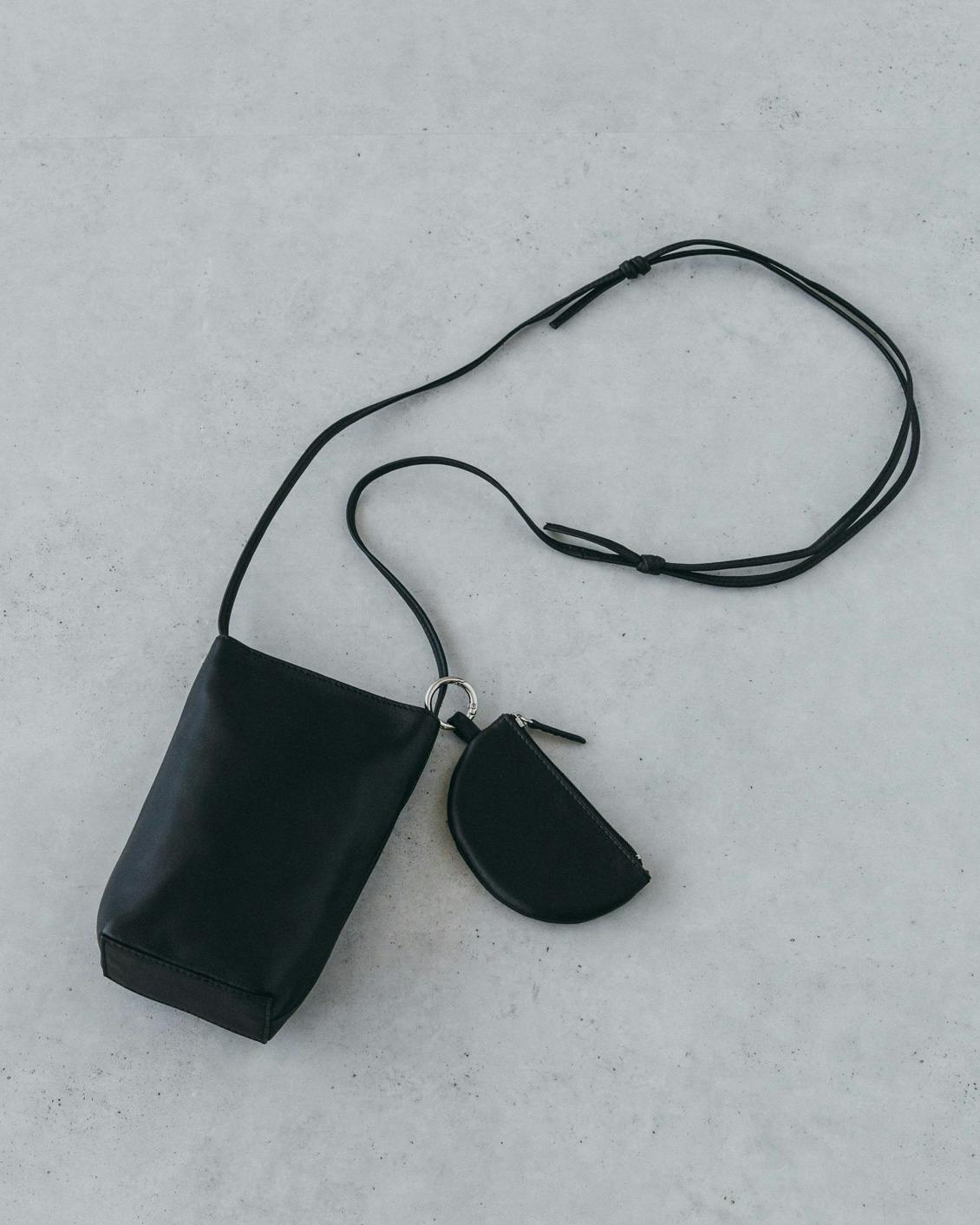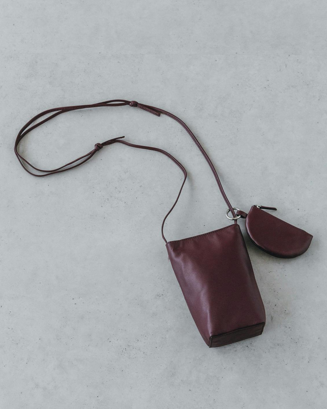 「品よく、身軽に」レザースマホポシェット(ミニポーチ付き)