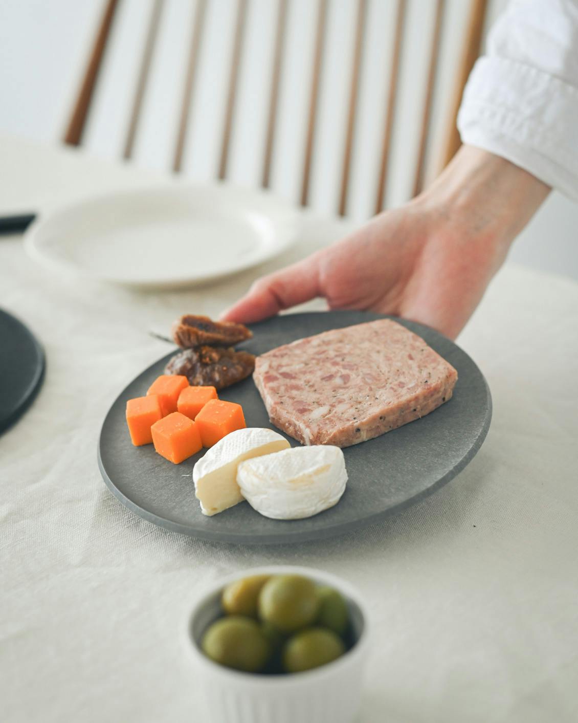ストーングレー は、明るすぎず暗すぎないやさしい色合い。木のテーブルやリネンクロスなど、異素材とも自然に馴染むので、スタイリングを考えなくても食卓が決まりますよ。
