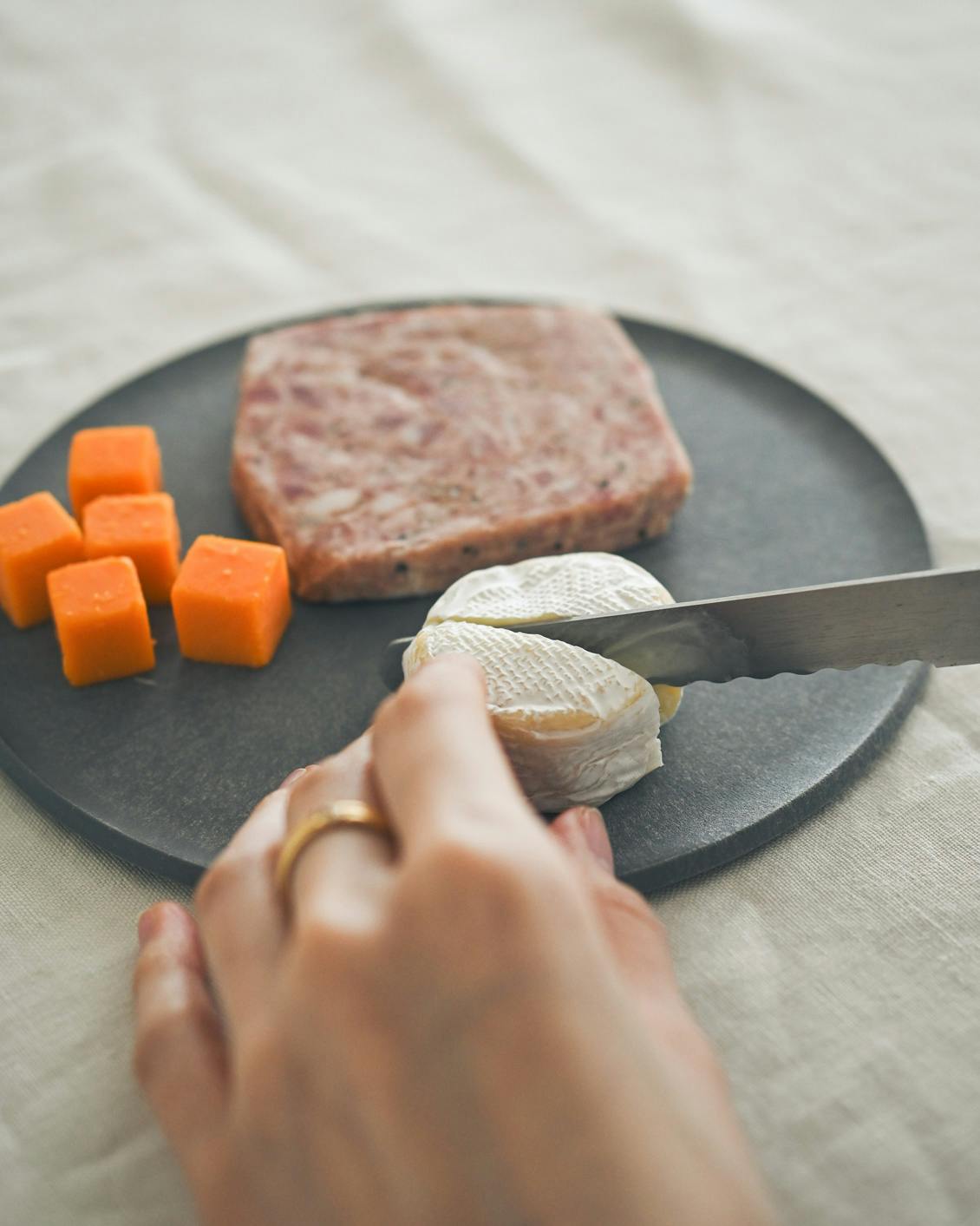 ※包丁を当てても大きく削れにくい素材ですが、一般的なまな板と同様にナイフの傷は使用感や味わいとしてお楽しみください。