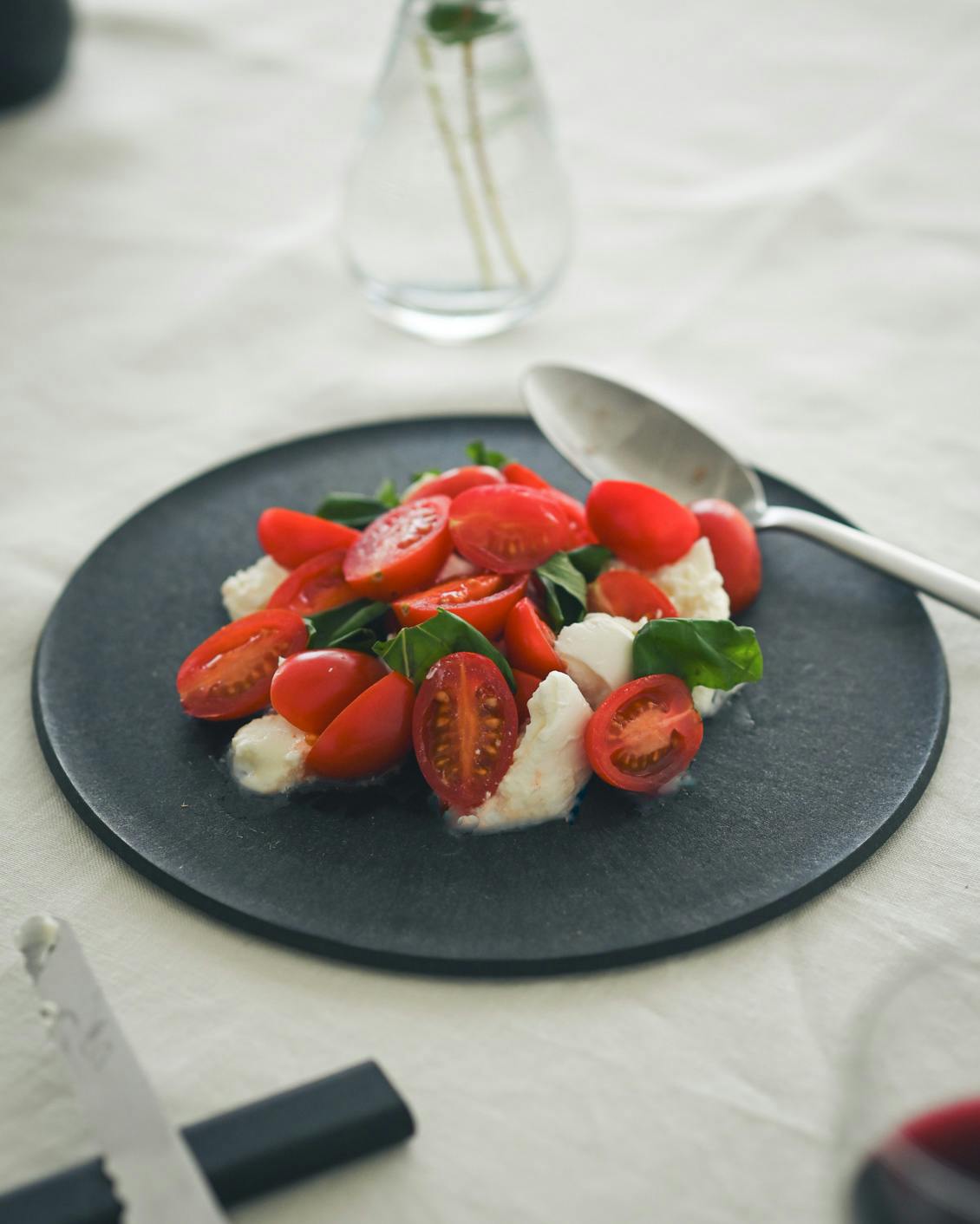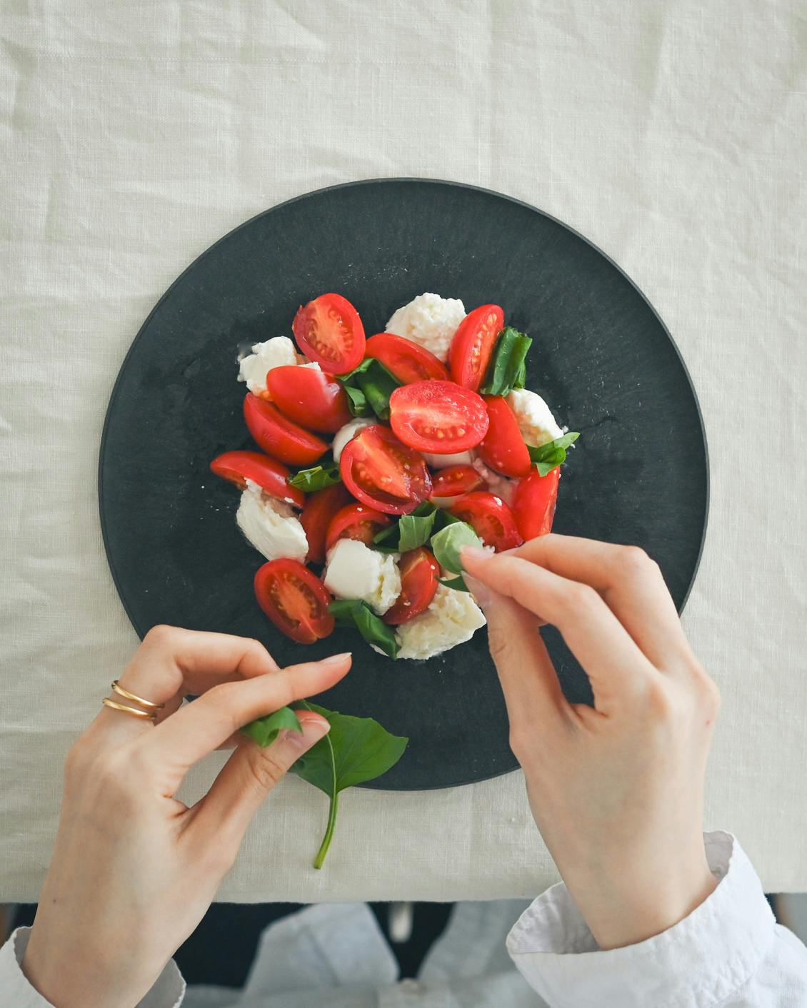 カプレーゼやベーグル、食パンを盛りつけると、 余白もきれいに楽しめます。
