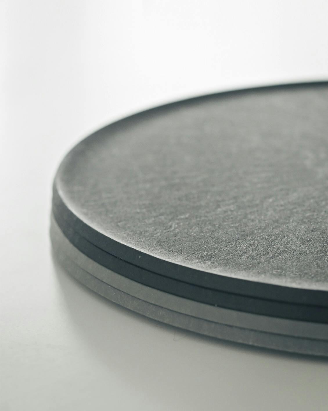 素材にはSPS樹脂を使用。 ガラス繊維も含まれているため、成形時の流れが放射線状に現れ、味わいのある表情を生み出しています。