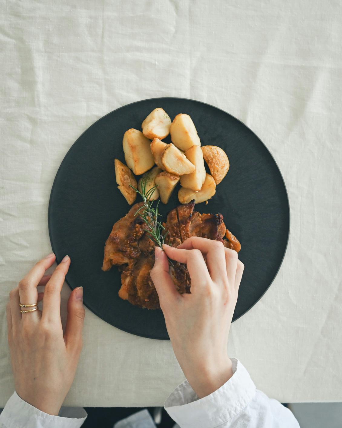 ブラック は、いつもの料理をのせるだけで凛とした印象に。食材の色や輪郭をすっと引き立てるから、料理が映える間違いのないカラーです。