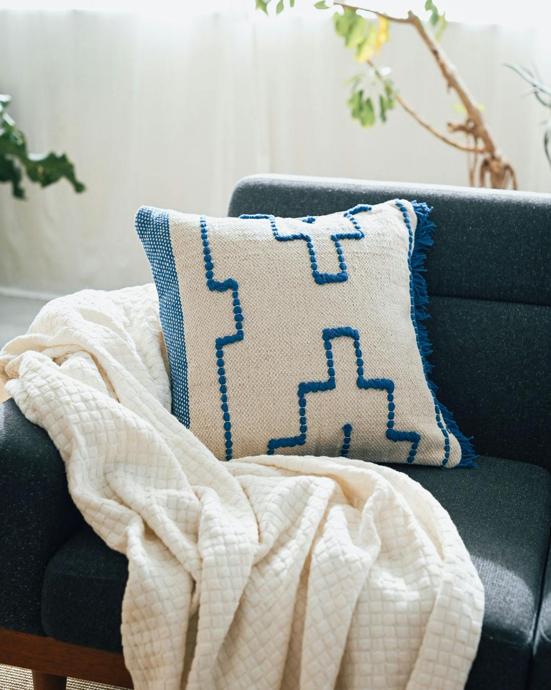 インドの生産者さんによって一点一点大切に作られた、beejのクッションカバー。