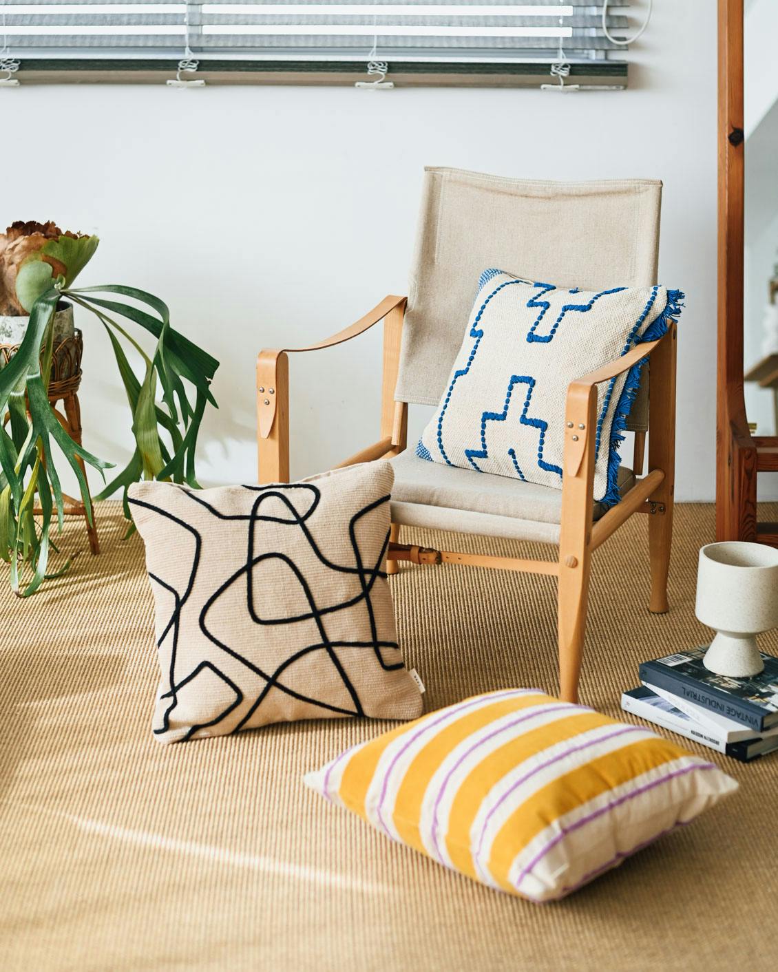 今回バイヤーが見つけてきたのは、こうしたテイストミックスを気軽に始めることができる「beej(ビージ)」のクッションカバー。