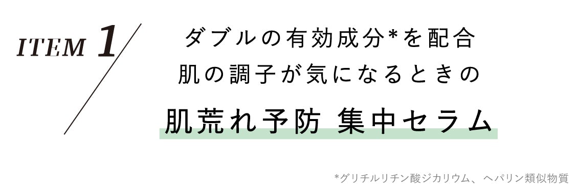 ダブルの有効成分で肌荒れを予防するだけでなく、バリア機能も補って、外部刺激の影響を受けにくい状態へ導くためのセラムです。