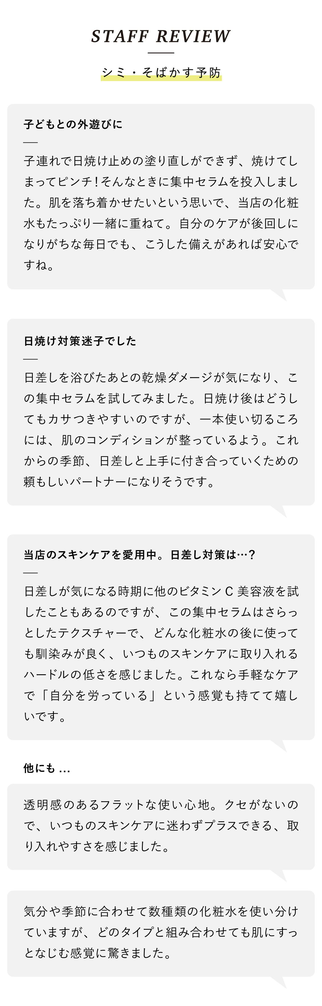 日差しを浴びた後すぐのケアにおすすめなのが、「シミ・そばかす予防」 の集中セラムです。