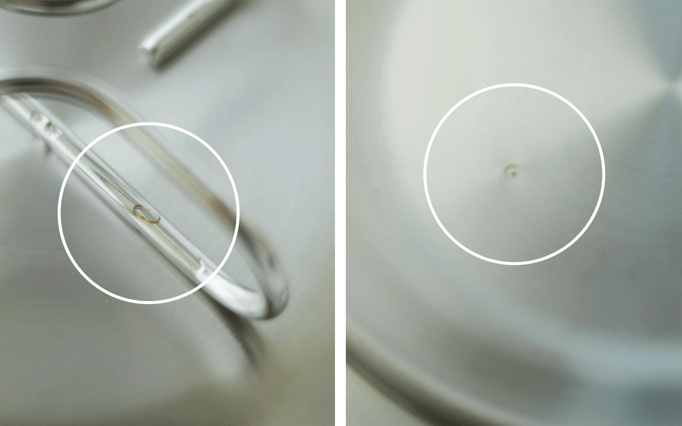 ・斑点や虹色の変色:水と食用酢を入れて弱火で数分間煮込む