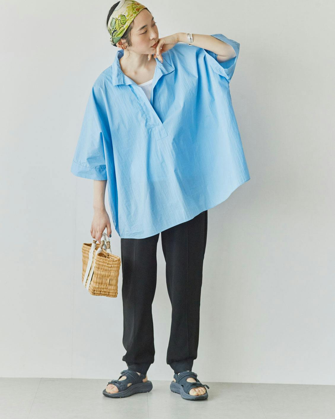 とろんと落ち感のある上品な生地で、合わせるアイテムによって着回し自在。春〜秋まで季節をまたいで頼りになる、万能なデイリーウェアです。
