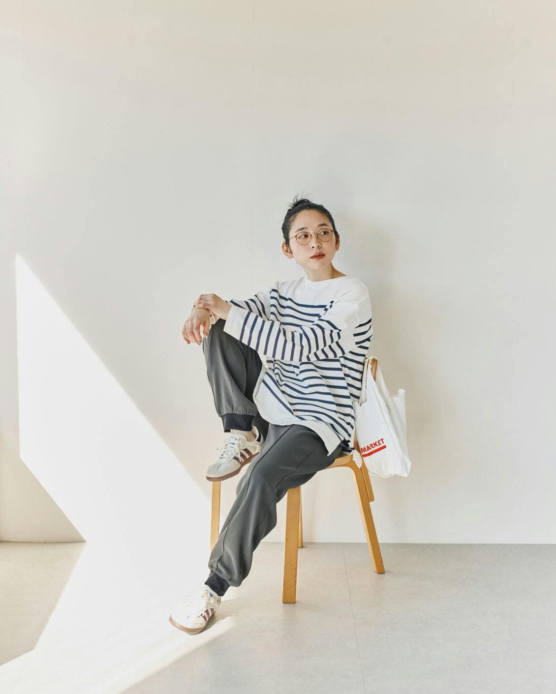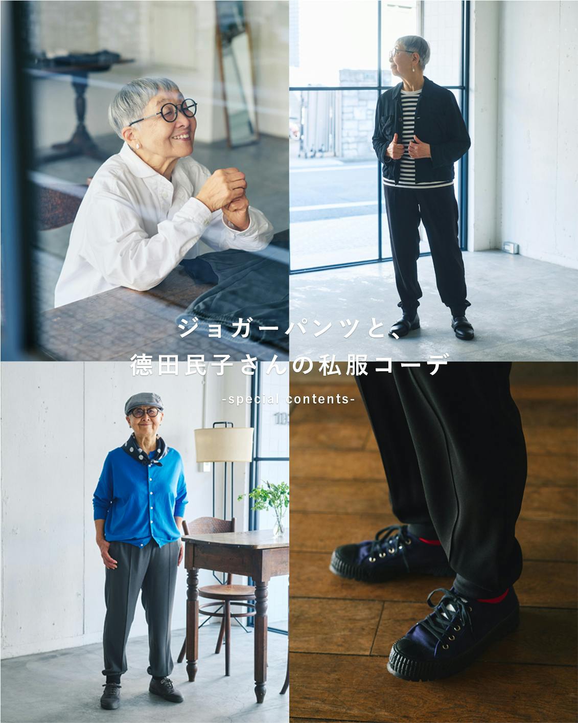 特集では、德田民子さんの私服と合わせたジョガーパンツの着回しをご紹介。