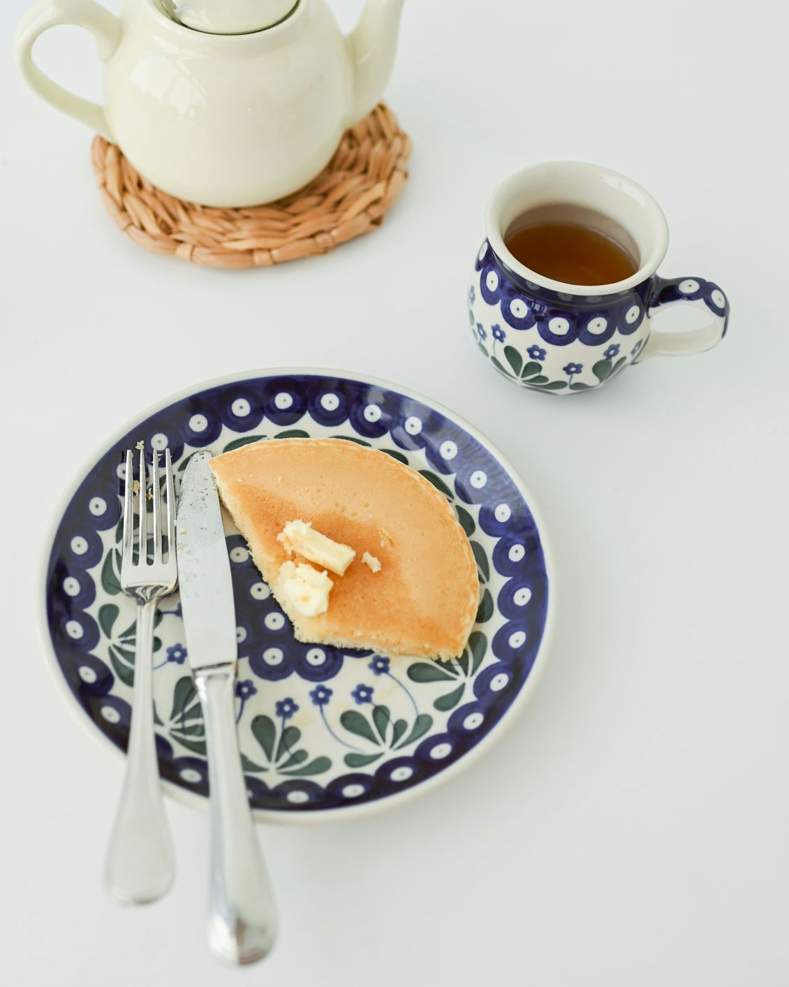 あえて違う柄同士を組み合わせても不思議と調和するように、藍色を基調とした落ち着いたトーンを選びました。洋食はもちろん、和食が並ぶいつもの食卓にも驚くほどしっくり馴染みます。