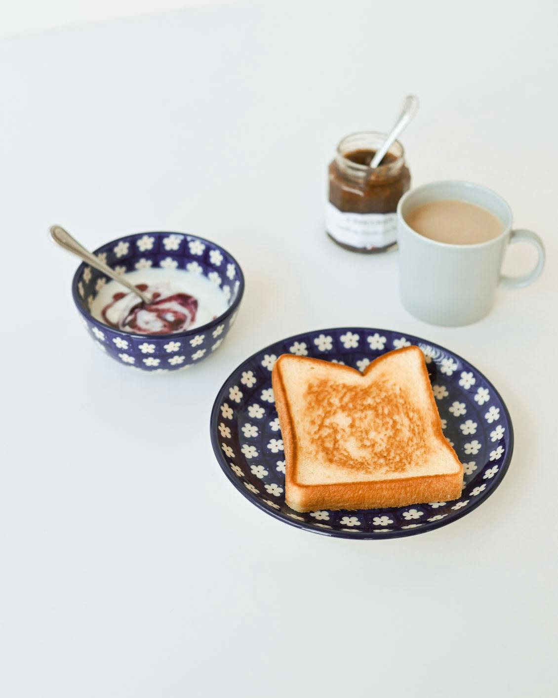 あえて違う柄同士を組み合わせても不思議と調和するように、藍色を基調とした落ち着いたトーンを選びました。洋食はもちろん、和食が並ぶいつもの食卓にも驚くほどしっくり馴染みます。