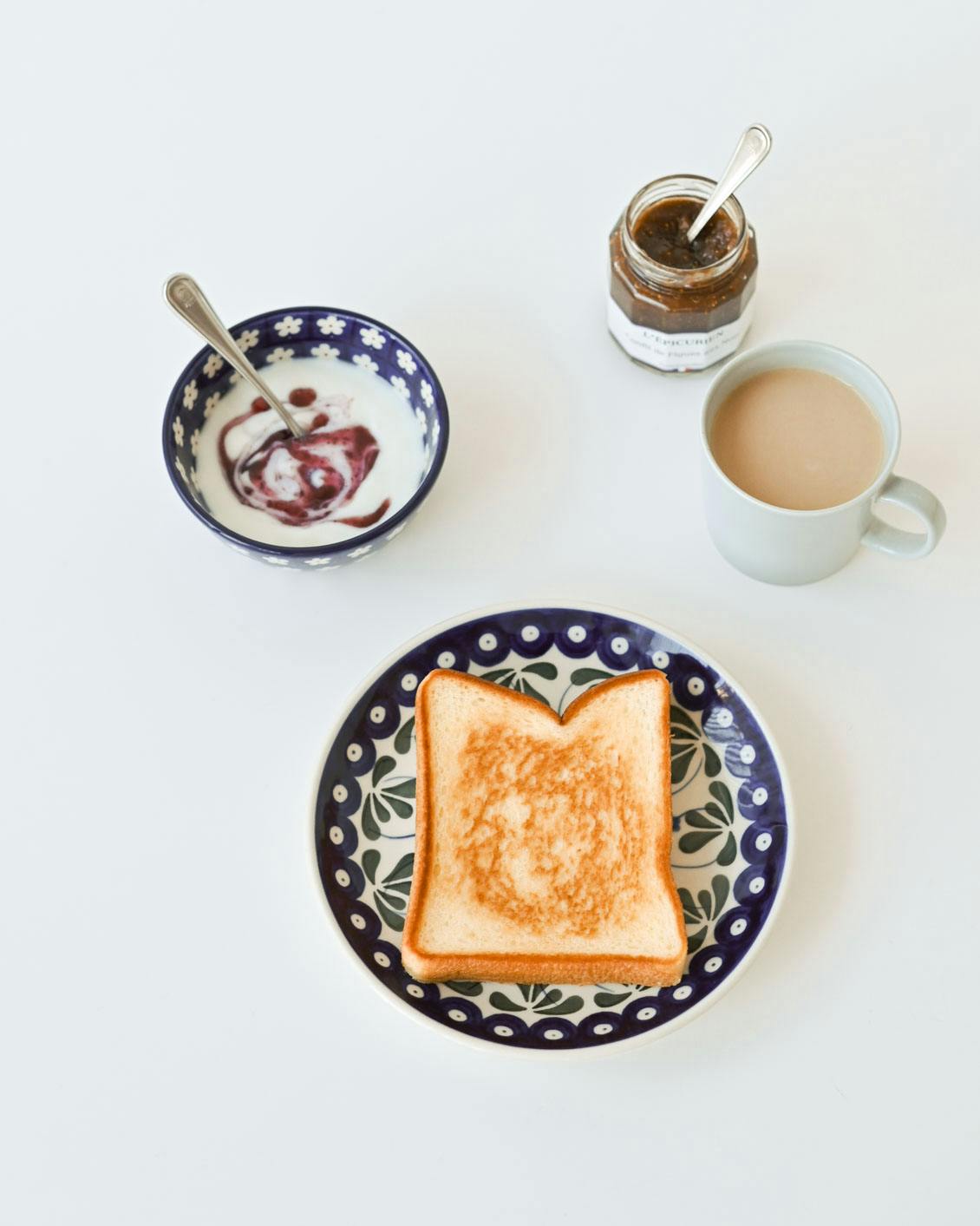 こんがり焼いたトーストをのせるのにあつらえたようなぴったり感。夕食のときには、ボリュームのある副菜を盛り付けたり、一人分のメインディッシュをのせたりと、何かと使い勝手がいいんです。