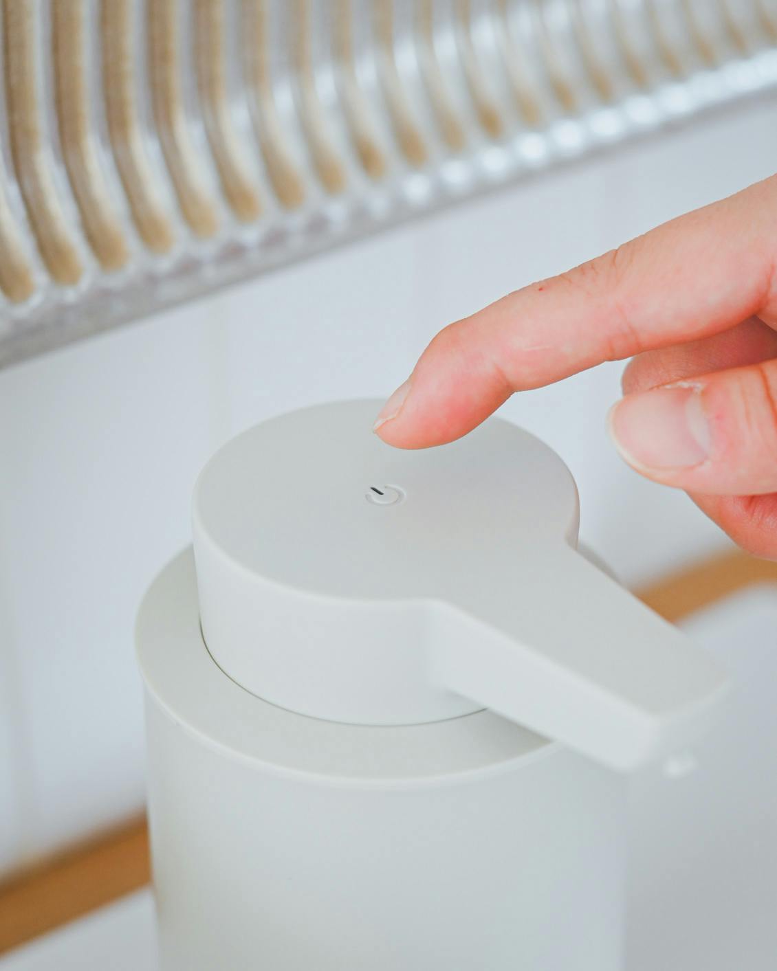 また、本体上部の電源ボタンをタッチするだけで吐出量が3段階で調整可能。必要な分だけ出せるので無駄が出にくいところもいいですよね。