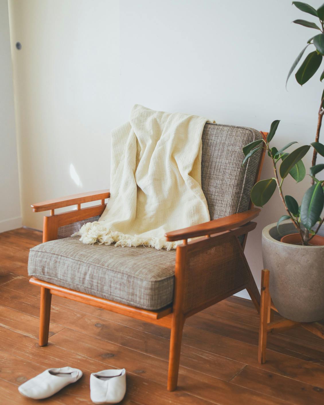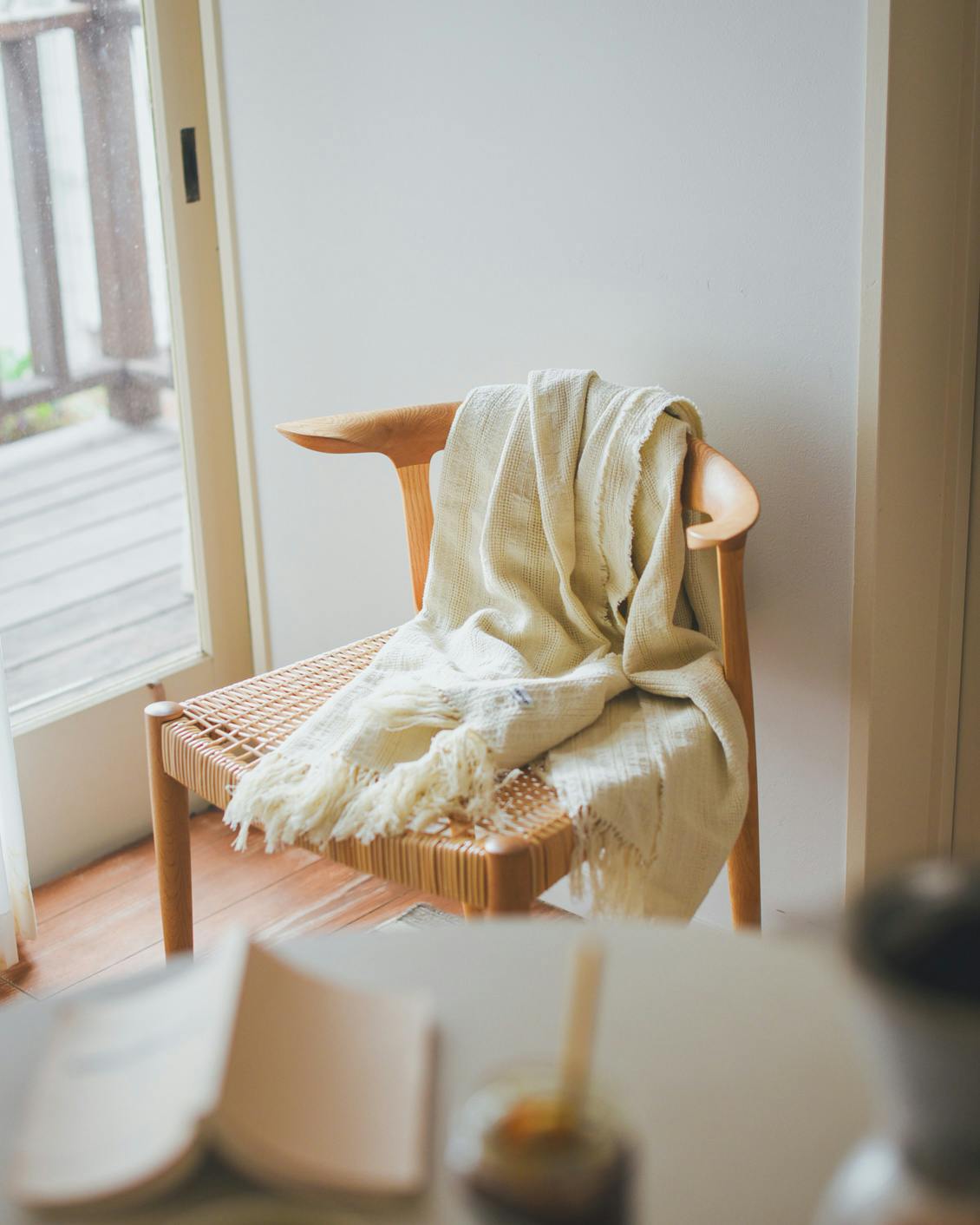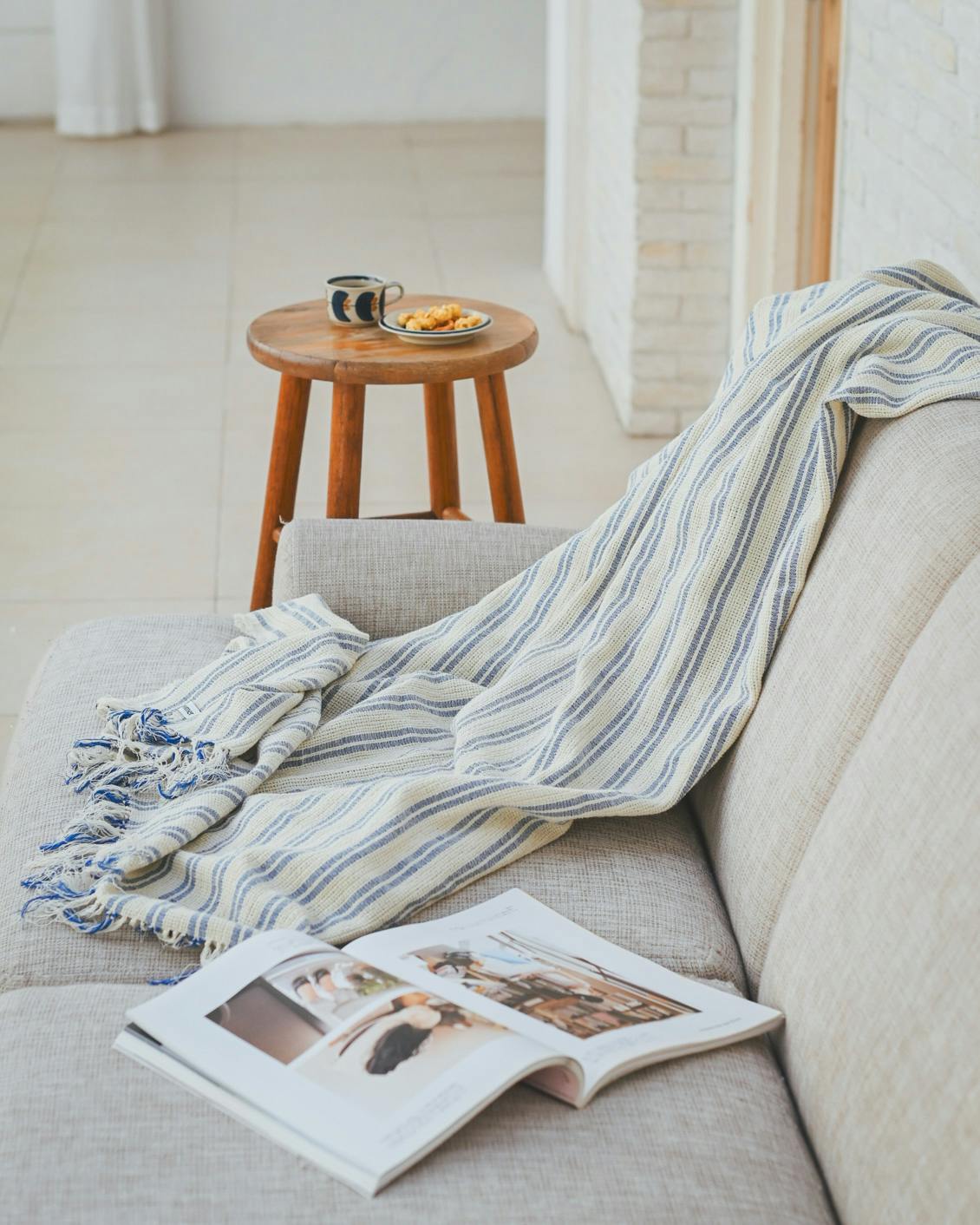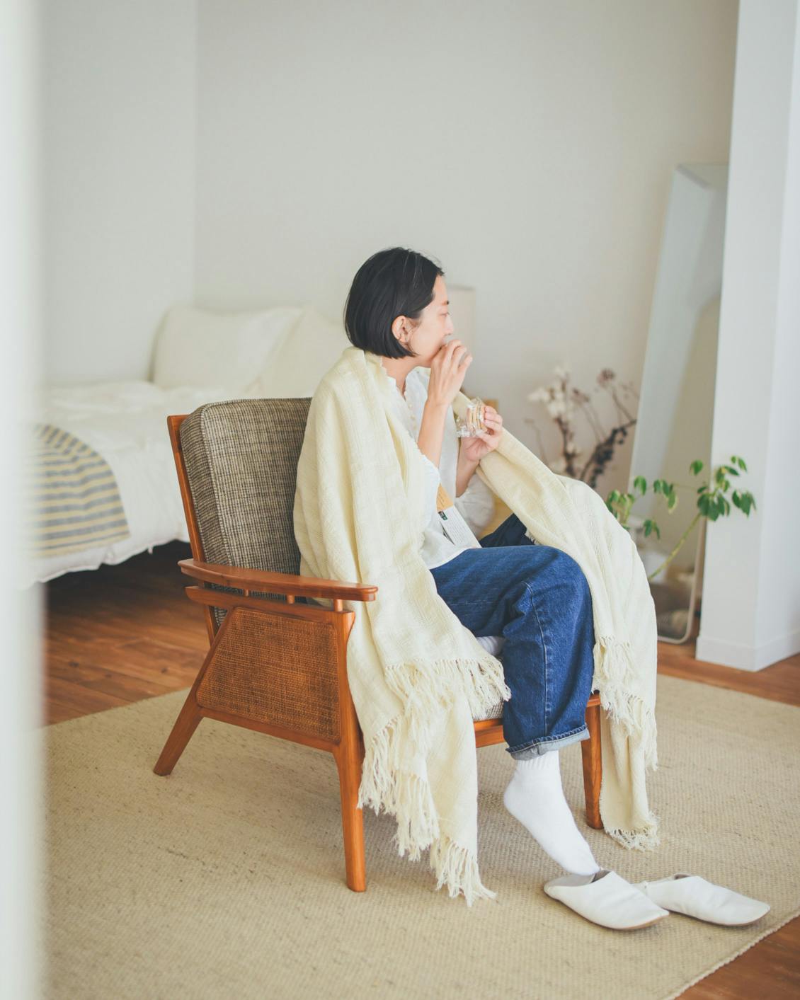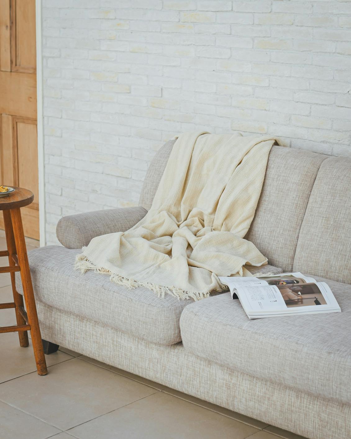 そしてその空気感を作るのは、きっと大きな家具や特別なアイテムに限らない。ソファにそっと掛けられた布や、無造作に敷かれているラグ。