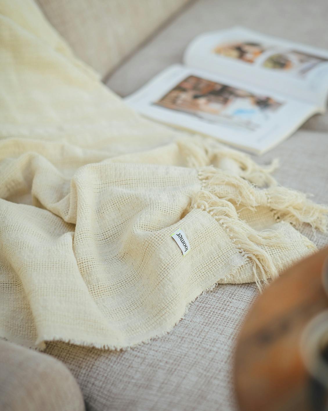 肌掛けにはもちろん、ソファや布団にざくっと掛けたり、ラグのように床に敷いたり、ピクニックだって。