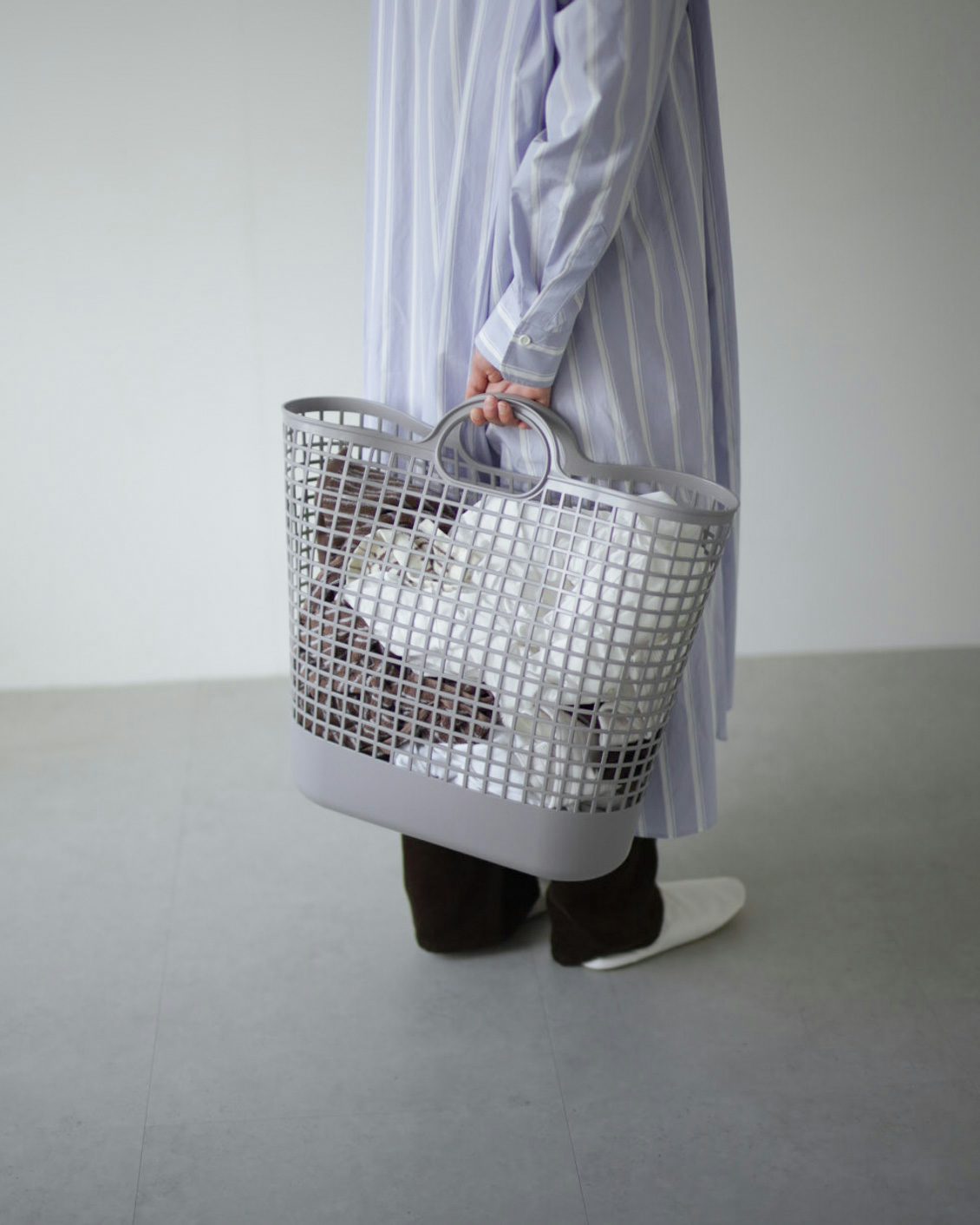 インテリアに馴染むライトグレーのバスケットは、当店だけの別注カラー。