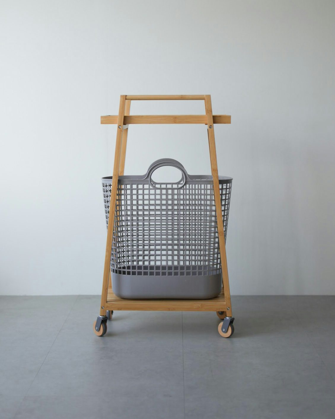 ワゴン本体は竹製。どこか無機質になりがちな洗濯機まわりも、天然素材の温もりが加わることで、あたたかみのある空間に。