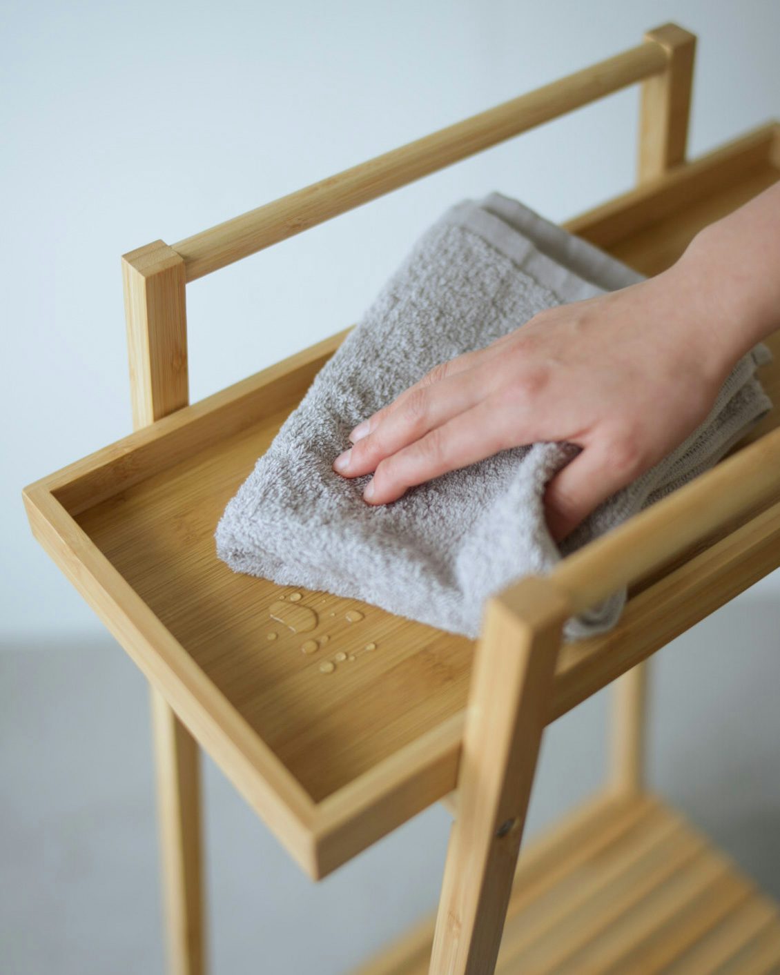 湿気の多い場所でも快適に使えるよう、本体にはクリア塗装を施しています。水気や汚れが気になったときも、さっと拭けばお手入れ完了。