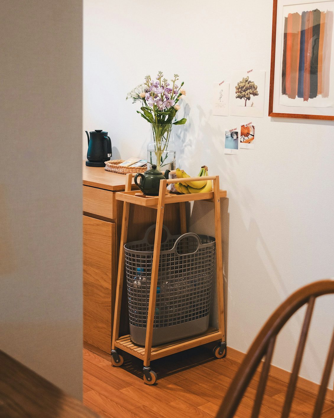 そんな理想を叶える、スリムな「ワゴン&バスケットセット」をご紹介します。
