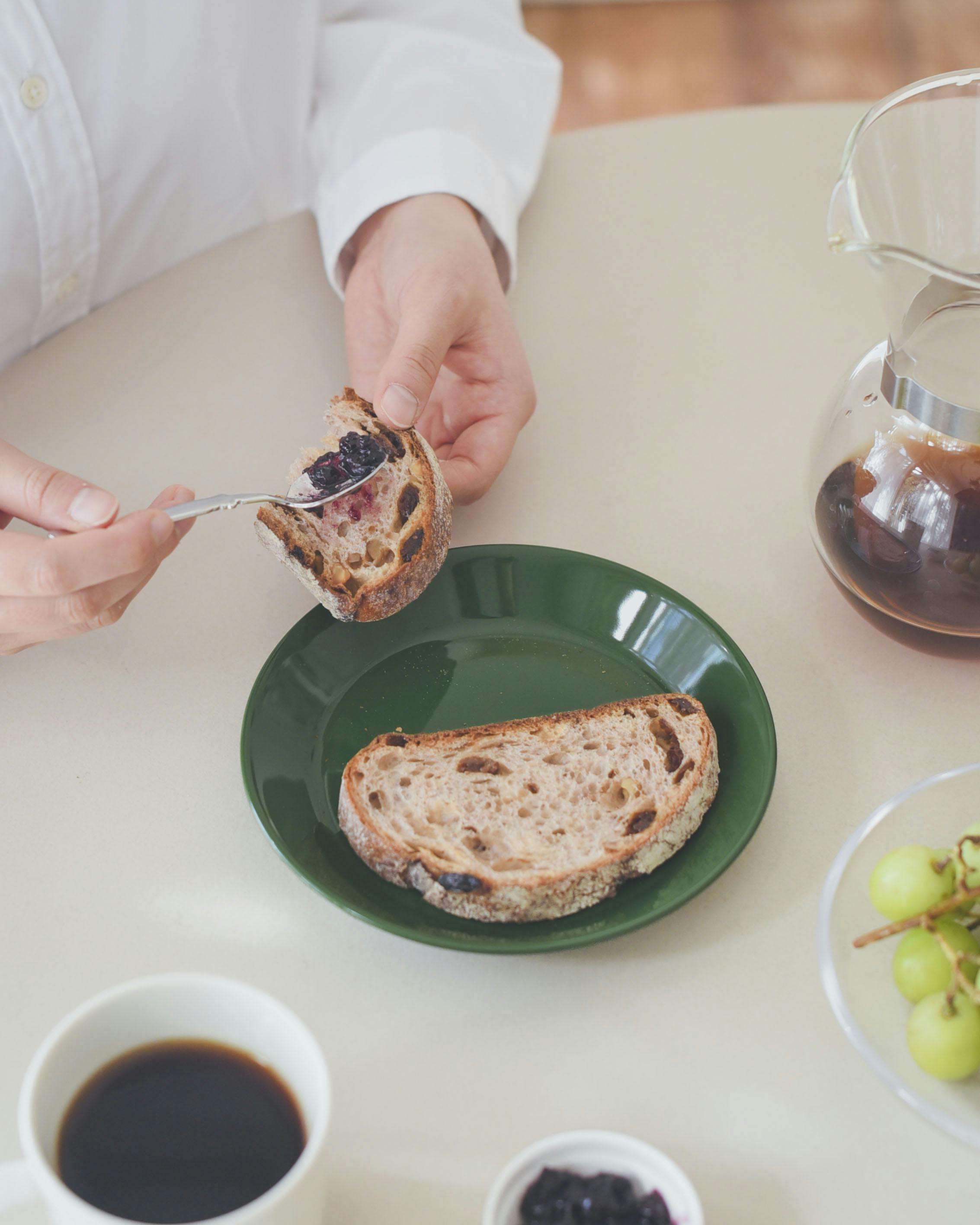 ケーキやカットしたフルーツをのせておやつの時間に使ったり、銘々皿にしたりと、用途はさまざま。