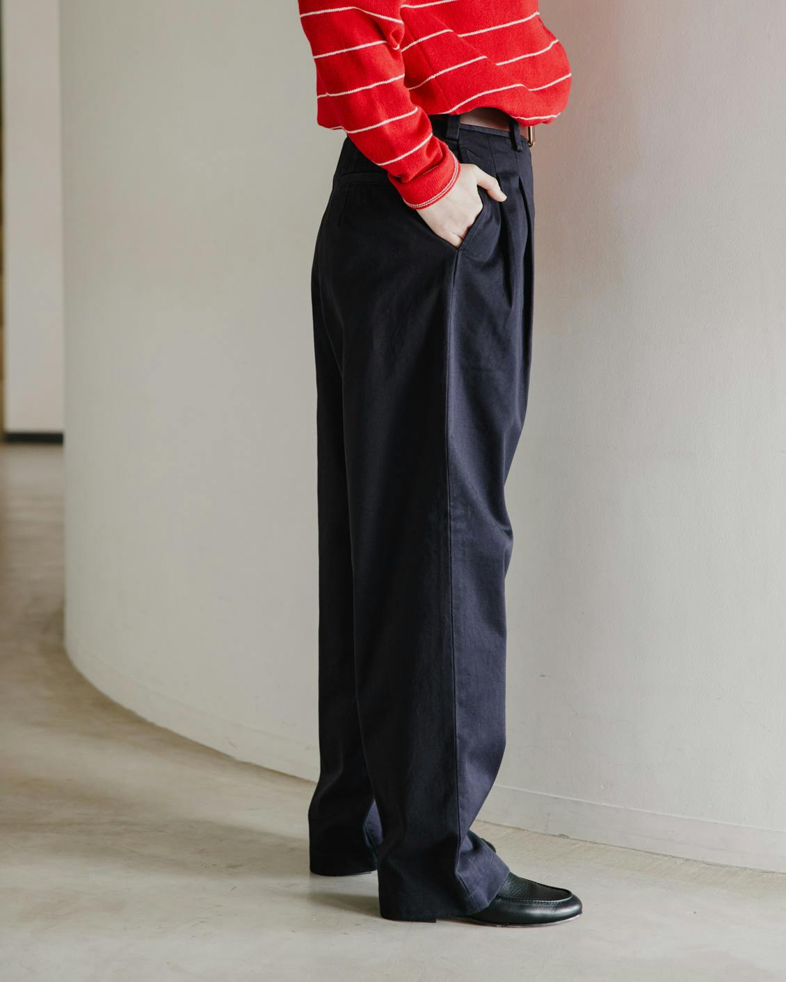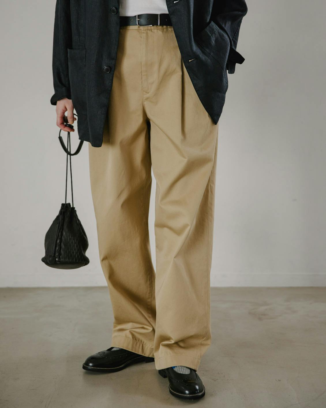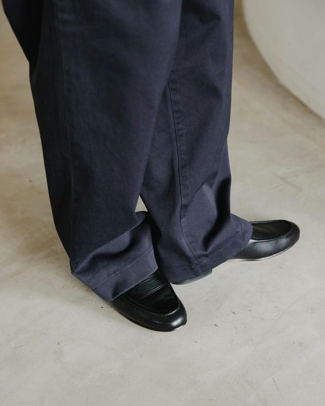 着るだけでお洒落に見える、だけど誰が着ても安心感がある1本を目指し、採用したのは、時代問わず愛せる「緩やかなテーパードシルエット」。