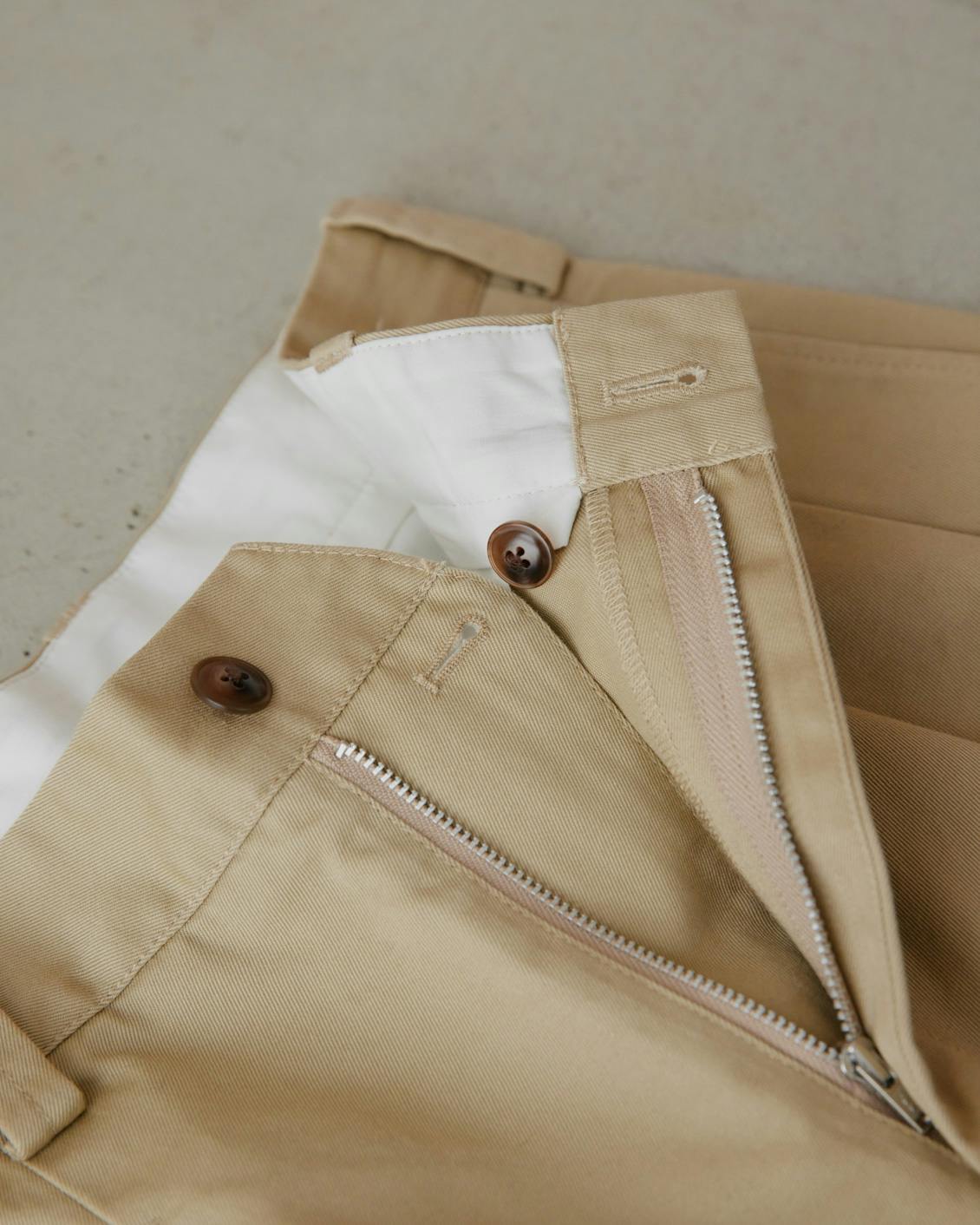 生地には、チノパンといえばこれ、とも言える王道の「チノクロス」を使用しました。