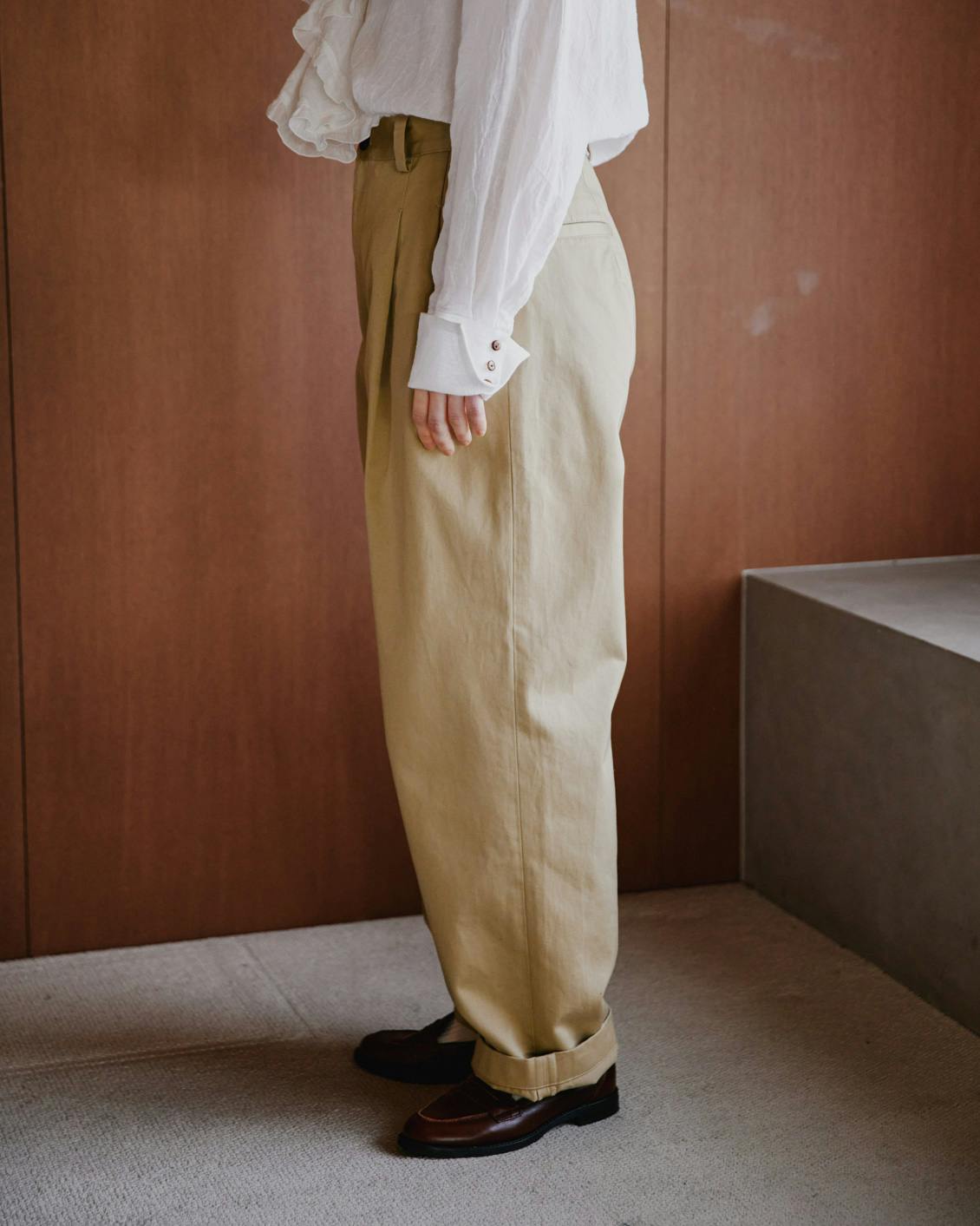 いつかは良い一本が欲しい、という想いをのせたクラシックなチノパンツ。